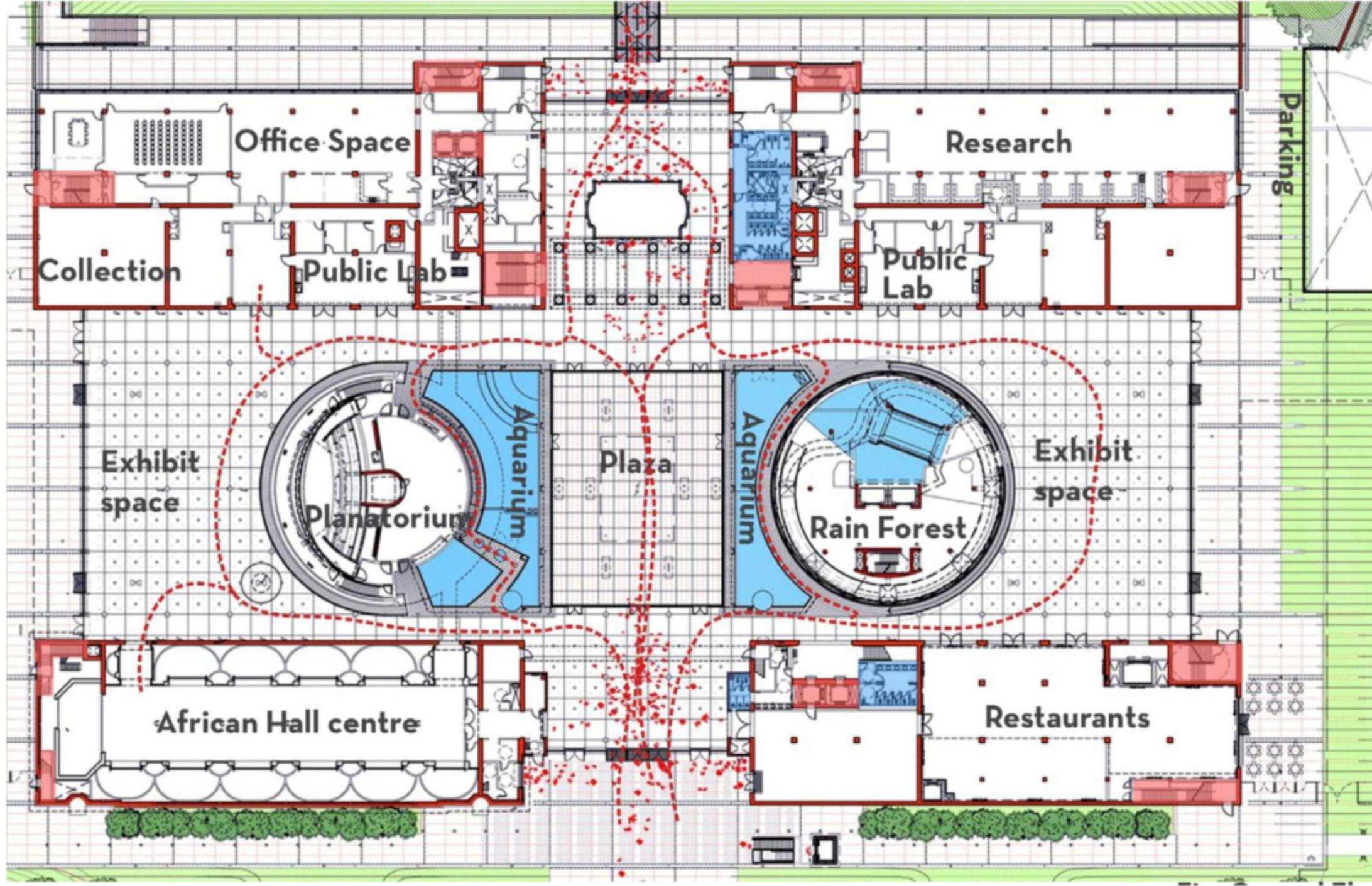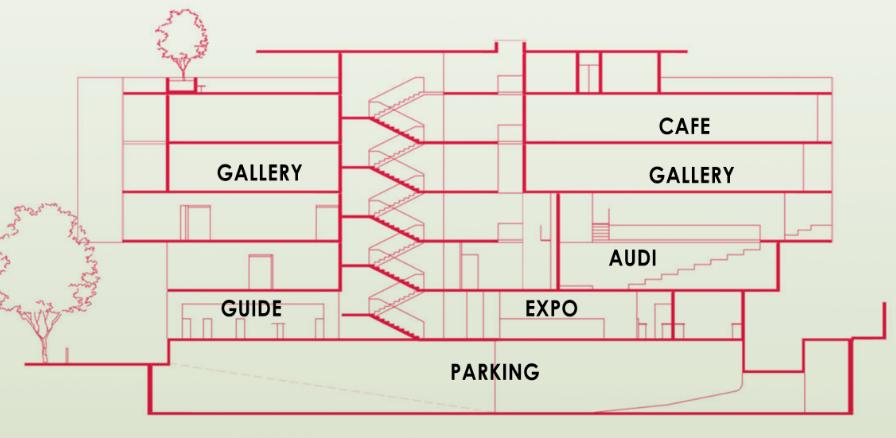 Museum -flow will be to basic science to advanced one .the flow will define by storeys.