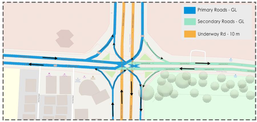 Road Width - 30-48 Metre (Two way Access - 6 Lanes)