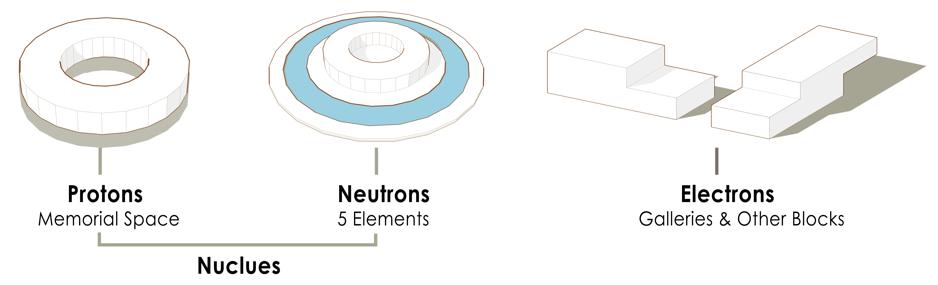 At the heart of the atom lies the nucleus, analogous to the central core of a site plan, such as a central plaza, garden, or main building. This core serves as the focal point, around which all other elements are organized, providing a sense of unity and coherence. Just as the nucleus contains protons and neutrons, the central core can house essen�al communal facili�es or key structures that support the overall func�onality of the site.