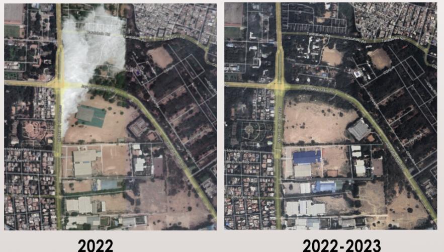 Through the years many built structures are tried to buit in the site boundary a�er covid they are vanished to take over empty land.Vegeta�on are grownup on the north side of site of poor maintainence