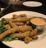 sauce, mellowed with ranch and/or blue cheese dressings. Green Beans are coated with a light cornmeal crust and fried crisp, dusted with finely grated Parmesan cheese at plating. A slightly spicy Chipotle aioli is provided for dipping.