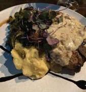This kitchen is at its best with the most obviously southern-influenced preparations. A large Fried Chicken breast bears a delicious, crunchy crust dabbed with bacon mushroom gravy that gives way to a moist, tender interior. I cannot recall another rendition of this perennial favorite that I’ve enjoyed more. Garlic mashed po-