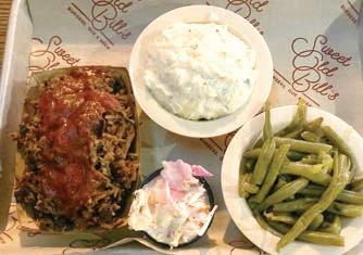 The Brisket emits solid beef flavor from fork-tender texture, augmented with Lexington-style barbecue sauce. You can get this sliced or chopped. I especially like the Pulled Pork, also with Lexingtonstyle barbecue sauce. (Lexington style is tomato based, as opposed to Eastern North Carolina style, which is primarily vinegar-based.) Chicken here ranks among the best I have had — juicy, with abundant flavor developed during