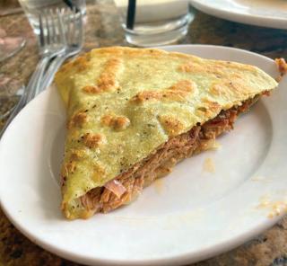 The Pork Quesadilla is a knockout, utilizing hickory-smoked pulled pork, plus pickled red onion, jalapeño pep-