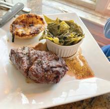 “Southern Roots” captures this restaurant’s concept, based on fresh ingredients, especially vegetables and seafoods, but meats as well, locally sourced when feasible, prepared in the best traditions of Southern cooking. Lisa Hawley, proprietor, began in food service washing dishes in a rest home at age 15. Her expertise grew as she gained experience in professional kitchens. She created the Southern Roots menu and developed most of the recipes. In past Furniture Markets, she worked with Martha Stewart providing House Beautiful parties when Ms. Stewart was food editor for that magazine.