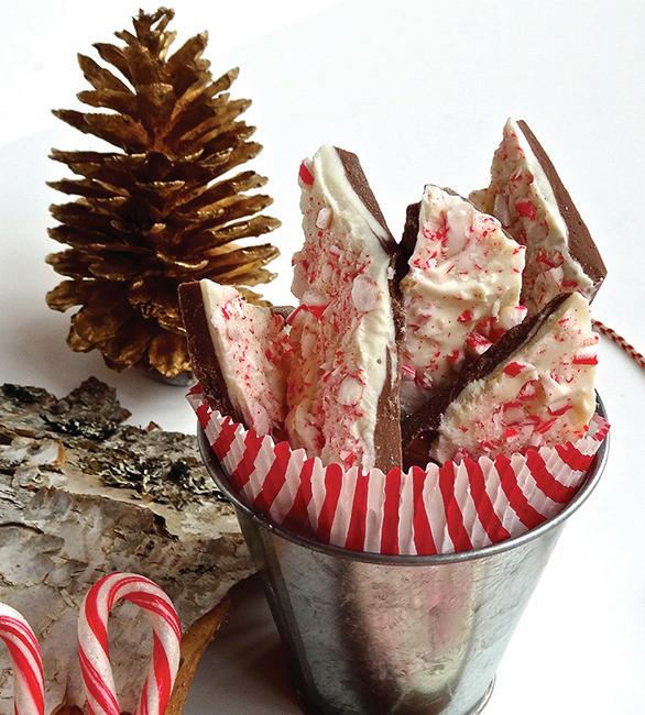 While on the topic of peppermint whatevers, I can’t leave out yummy — and trendy — peppermint bark. Who can resist the sweet layers of dark and white chocolate topped with crunchy peppermint bits? The bright holiday tins filled with the confection at high-end kitchenware stores are tempting to buy, but they’re also pricey.
