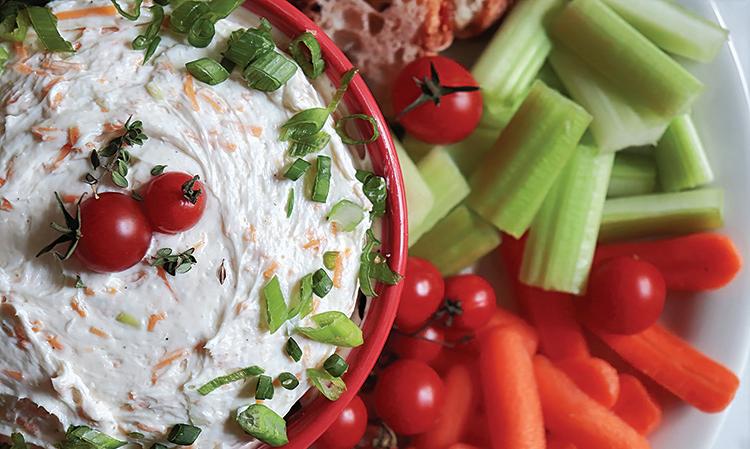 Think “Nibbles,” Not a Buffet: Crackers, fruit, veggies and your cream cheese spread looks generous without draining your time or budget.