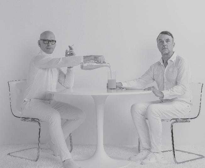Fueled by the glitz and glam of late1970s game-show camp (big fill drums and ‘buzzing-in in the name of the Lord!’) the Bible Bonkers theme cemented the duo in the placement game — who then created the Hot Goat Music LLC out of good sense and a growing list of credits that includes composing songs for David Gordon Green’s 2024 comedy-drama Nutcrackers (starring Ben Stiller); collaborating on songs for an Amazon sciencefiction comedy-drama series created by Greg Daniels (The O ce and Parks and Recreation); making recordings for Starz programs; and tracking the WURG Radio ID that appeared in both Halloween Kills and Halloween Ends. With so much activity Randall surmises they’re due for a fresh photo shoot–shouting out the work of Winston-Salem photographer Liz Nemeth and Hot Goat’s mostly-monochromatic visual imagery
