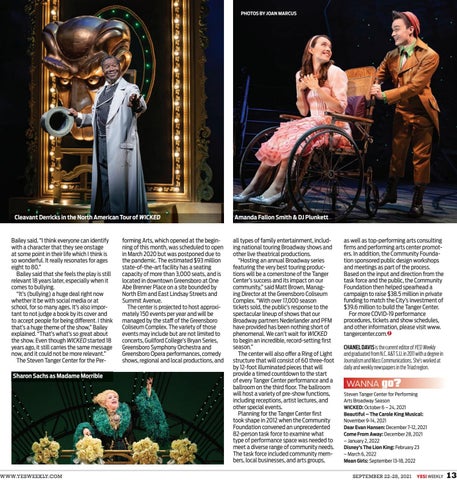 as well as top-performing arts consulting firms and performing arts center promoters. In addition, the Community Foundation sponsored public design workshops and meetings as part of the process. Based on the input and direction from the task force and the public, the Community Foundation then helped spearhead a campaign to raise $38.5 million in private funding to match the City’s investment of $39.6 million to build the Tanger Center. For more COVID-19 performance procedures, tickets and show schedules, and other information, please visit www. tangercenter.com. ! CHANEL DAVIS is the current editor of YES! Weekly and graduated from N.C. A&T S.U. in 2011 with a degree in Journalism and Mass Communications. She’s worked at daily and weekly newspapers in the Triad region.