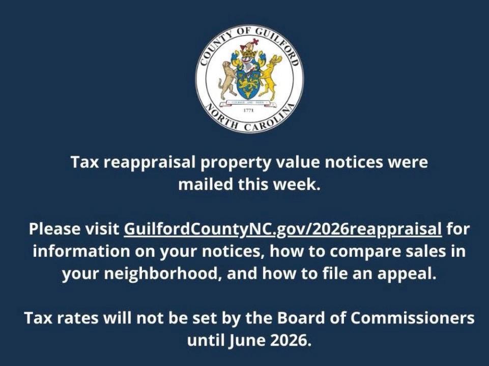 8 Notices received in early February indicate Guilford County’s 2026 property reappraisal may result in homeowners paying a HIGHER TAX BILL in July. According to some recipients, the assessed value of their homes has increased by as much as 100%.