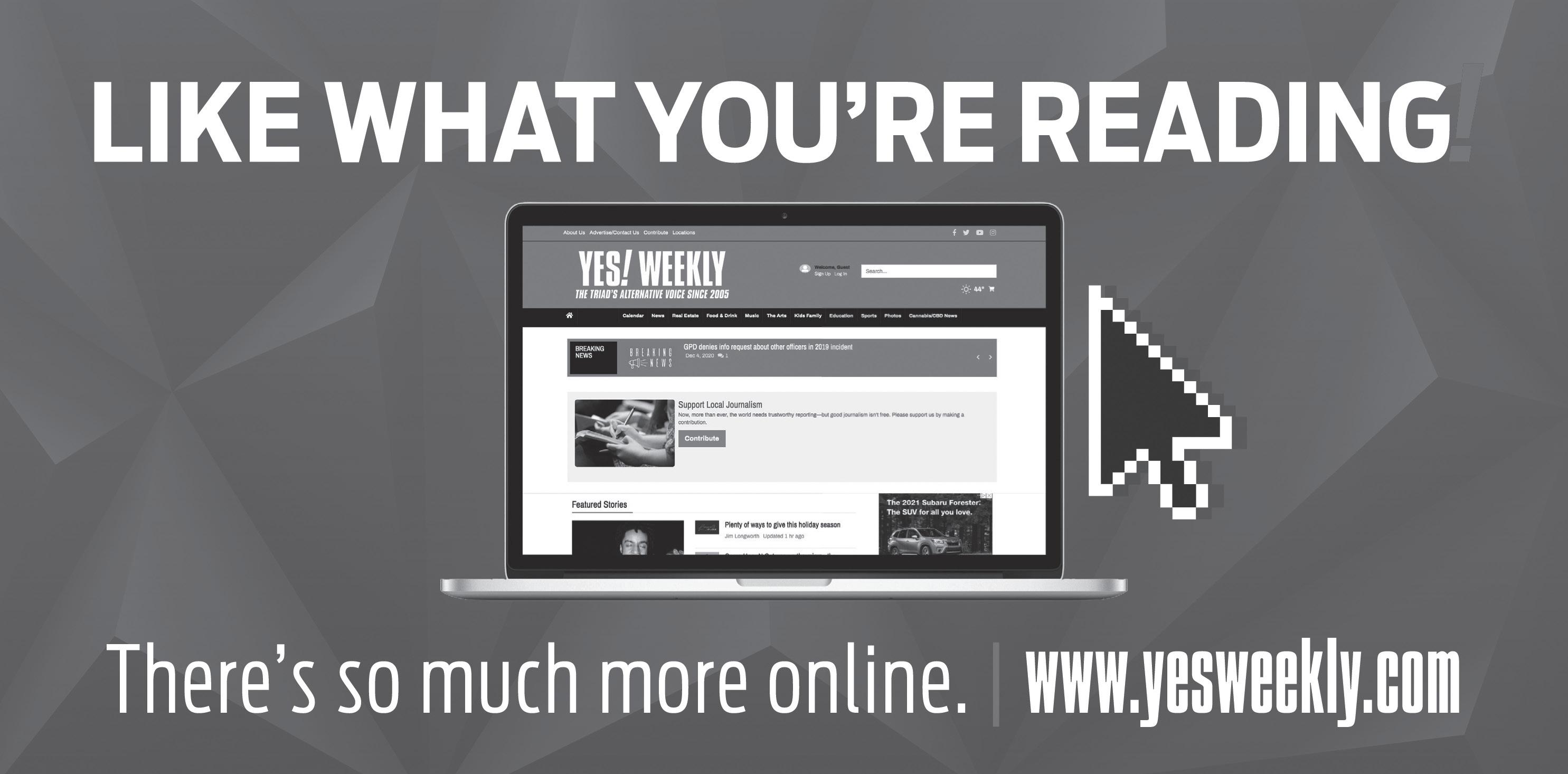 We at YES! Weekly realize that the interest of our readers goes well beyond the boundaries of the Piedmont Triad. Therefore we are dedicated to informing and entertaining with thought-provoking, debate-spurring, in-depth investigative news stories and features of local, national and international scope, and opinion grounded in reason, as well as providing the most comprehensive entertainment and arts coverage in the Triad. YES! Weekly welcomes submissions of all kinds. Efforts will be made to return those with a self-addressed stamped envelope; however YES! Weekly assumes no responsibility for unsolicited submissions. YES! Weekly is published every Wednesday by Womack Newspapers, Inc. No portion may be reproduced in any form without written permission from the publisher. First copy is free, all additional copies are $1.00.