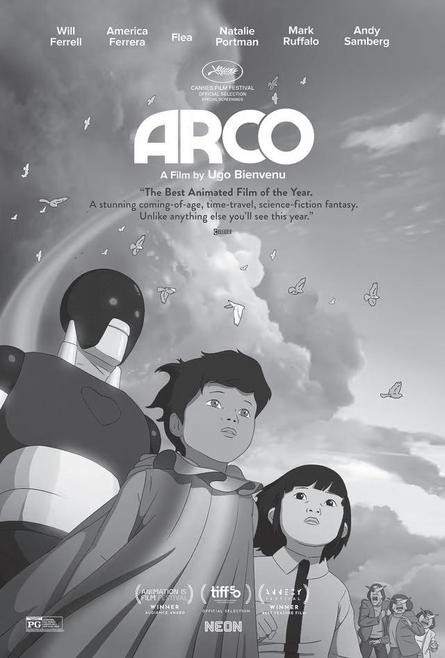 Having nothing whatsoever to do with the petroleum company, writer/producer/ director Ugo Bienvenu’s “Arco” is a dazzling animated extravaganza that tugs at the heart while simultaneously o ering nifty concepts and eye-popping visuals. This futuristic fable packs a lot into its fast-paced, 90-minute running time and has earned a welldeserved Academy Award nomination for Best Animated Feature.