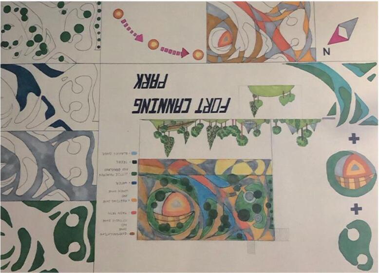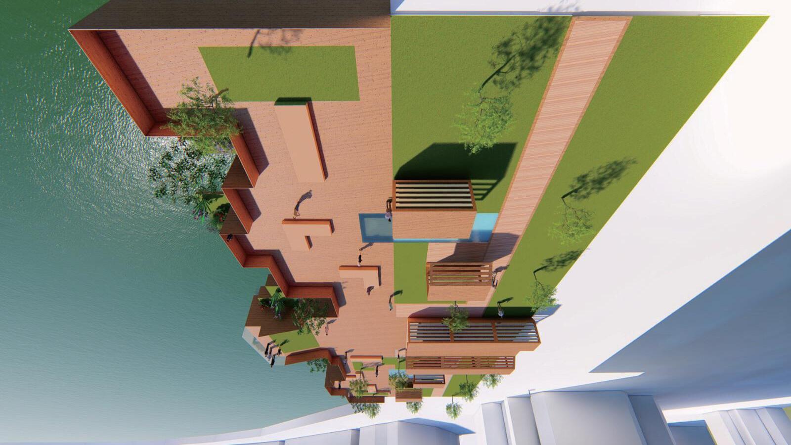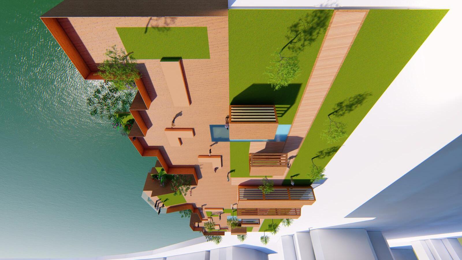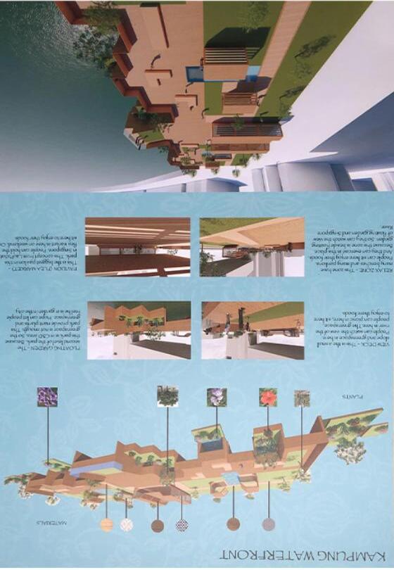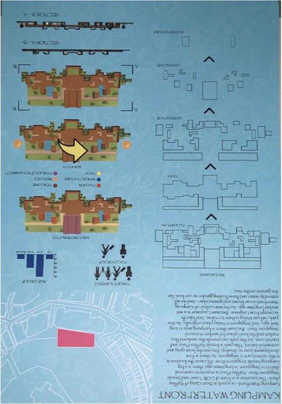 and singapore is malay place originally. so i use malay culture ro realise in this park. and take the concept from laupasat. because laupasat was a wet market long times ago. so the main colour of kampung waterfront is use brown and green colour. and we will extend to water and have floating garden. so can look like the garden on the river.