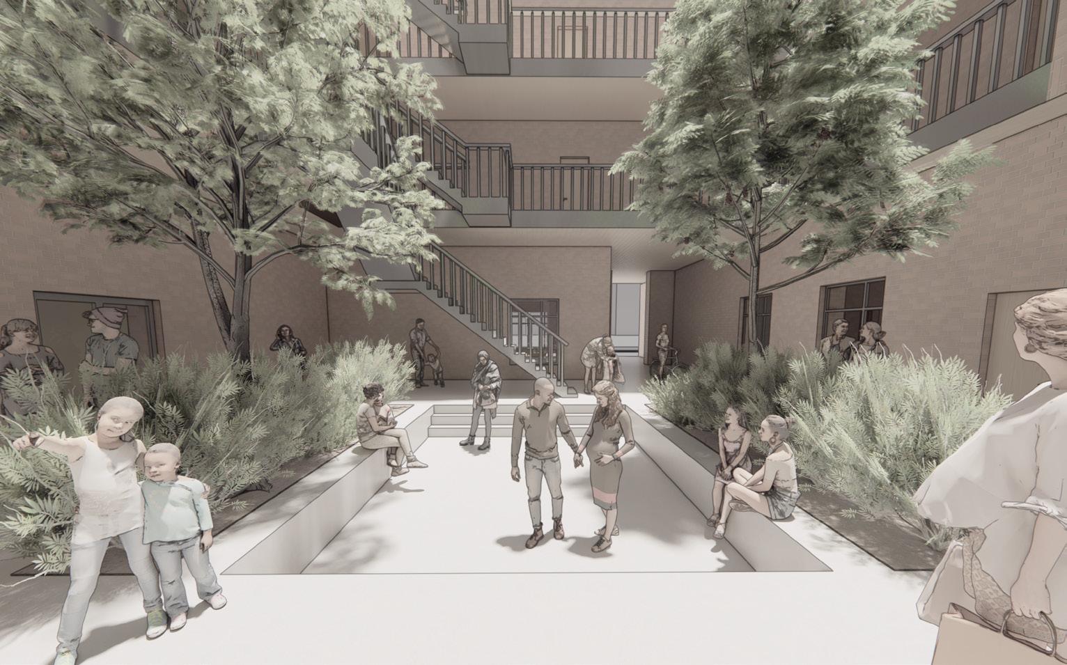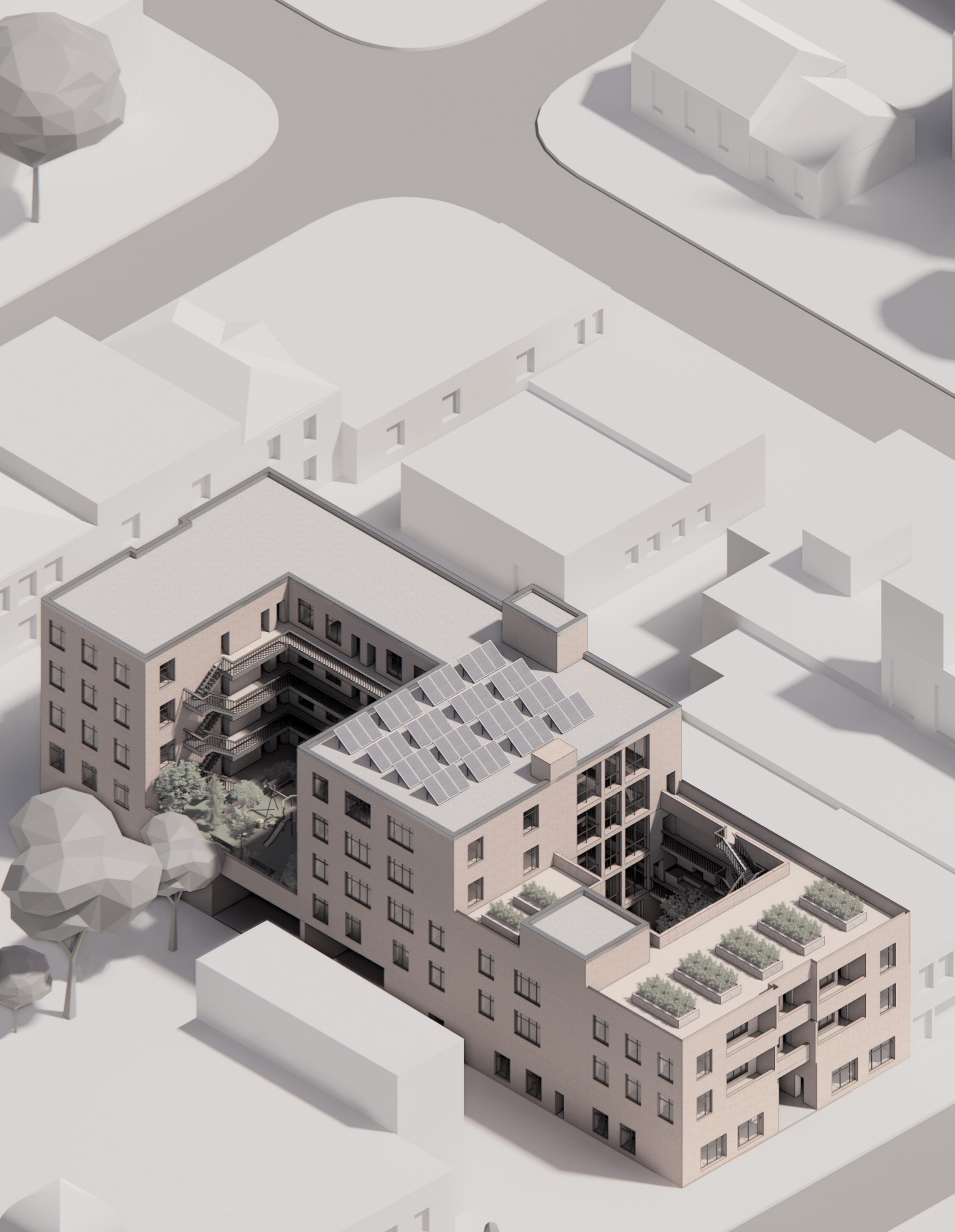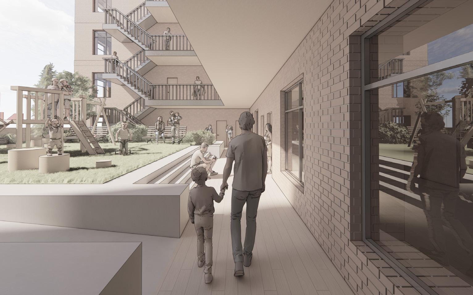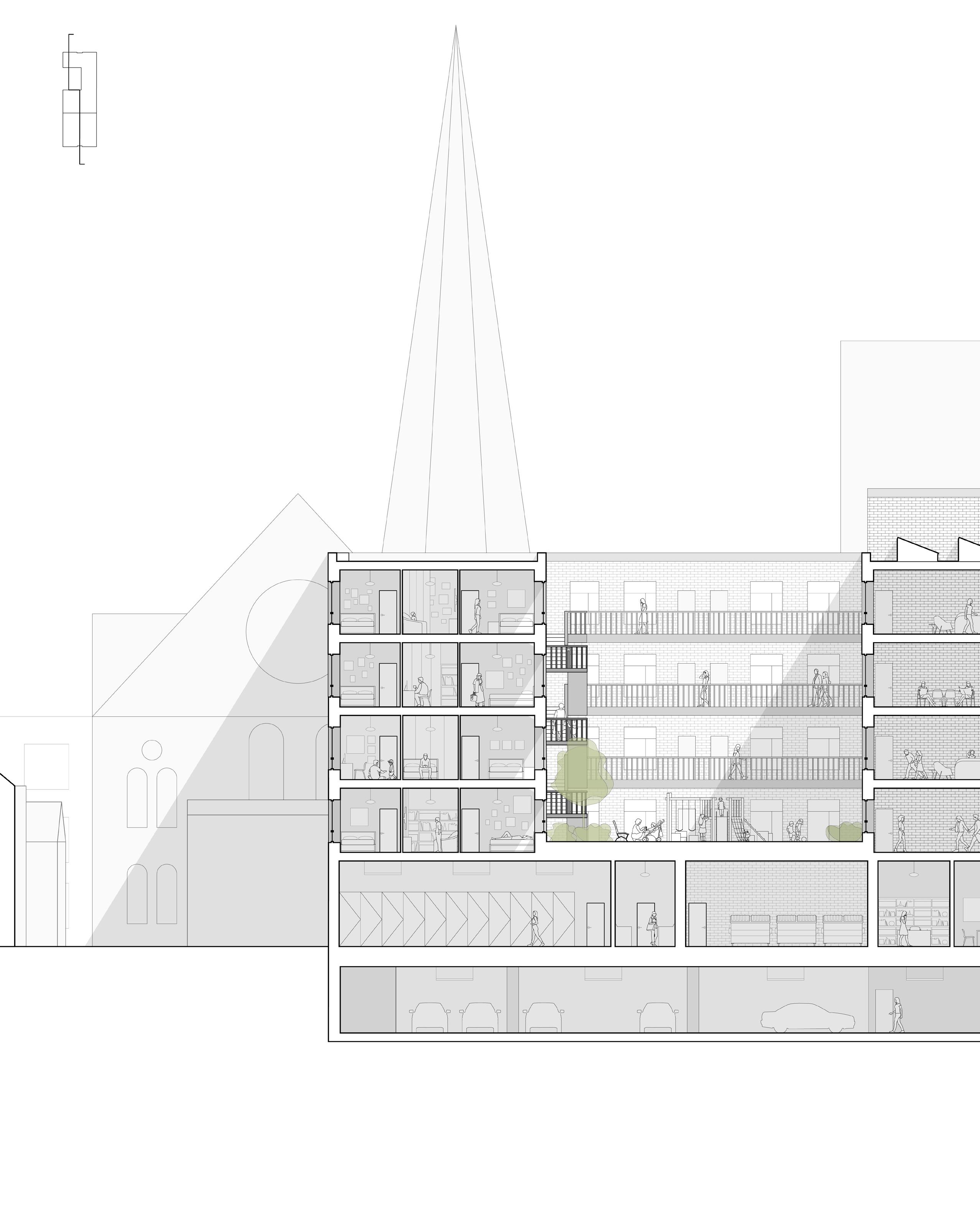 Cambridge Commons is an intimate infill project in the heart of downtown Cambridge. Designed as a transition home for struggling women, children, and young families, it focuses on the experience of moving through the shifting common spaces within the building, each with varying degrees of privacy, flexibility, and programs. These spaces, inspired by “Khrushchyovkas” (also known as “Commie Blocs”) which are built around generous courtyards with numerous programmed and public amenities, aim to offer the tenant the opportunity to connect to their community, both within the apartment’s walls and beyond.