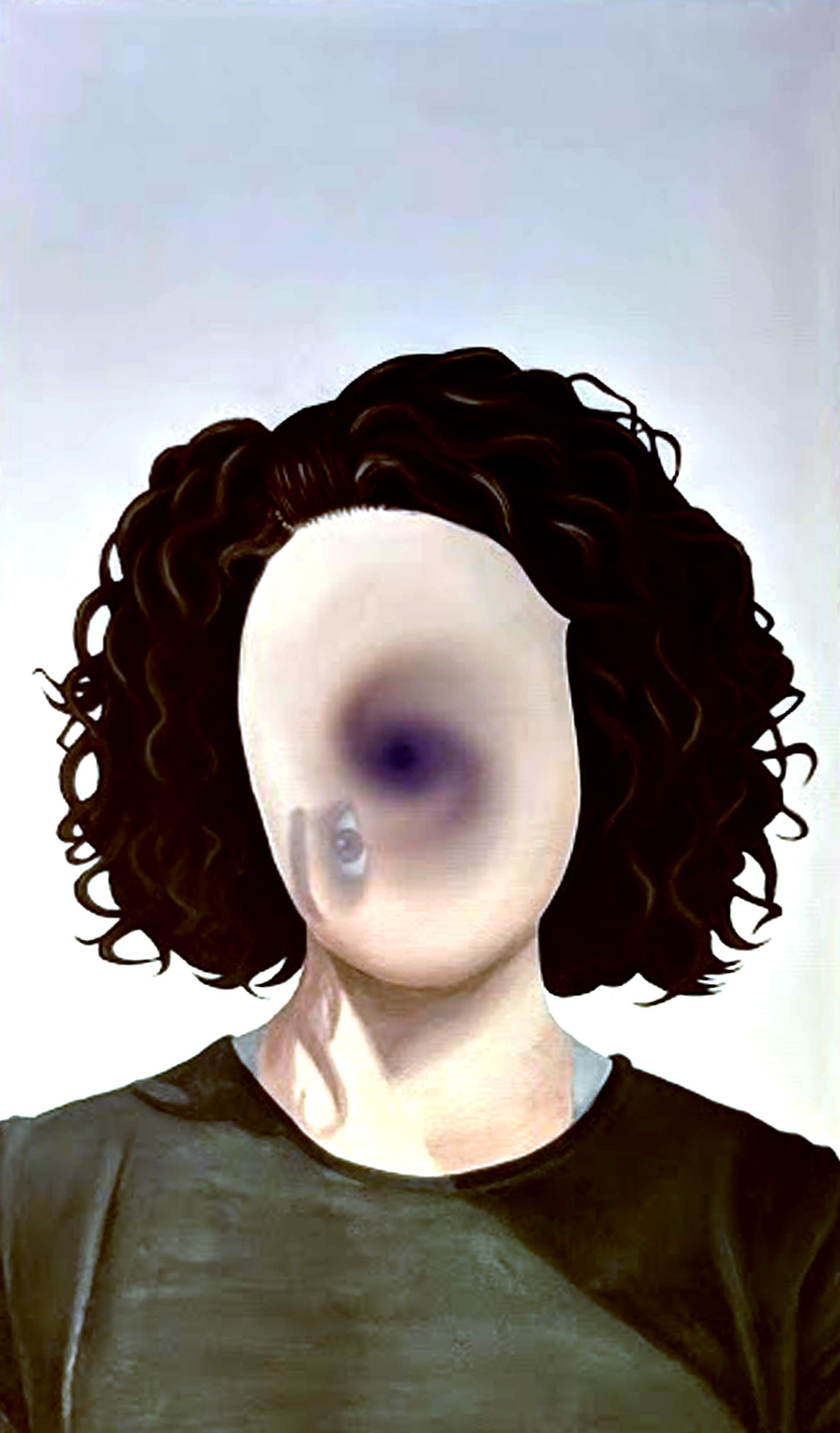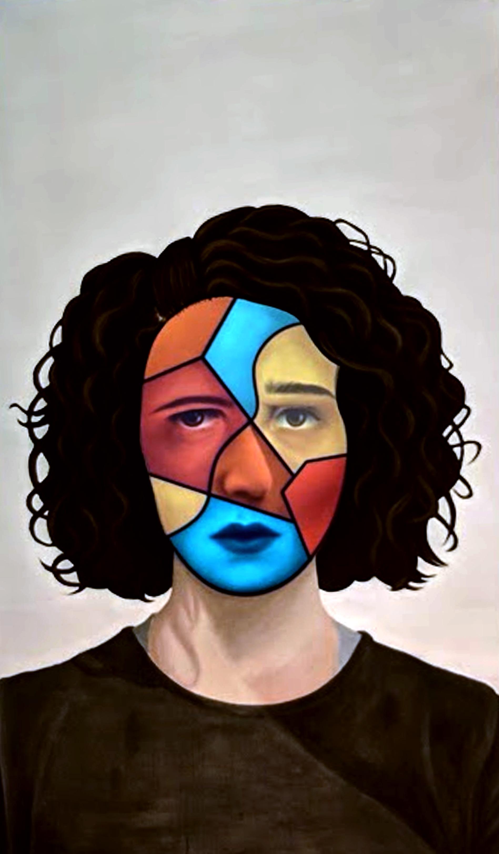 I painted this self portrait during a really difficult time in my life while I was struggling with my mental health. The work reflects how I felt in my mind and body at the time, and concequently how I looked at myself. This painting served as a tool to visualize the issues I had been struggling with and begin to move past them.