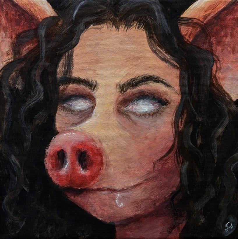 I decided to paint this because I found the image both humorous and off-putting, and I wanted viewers to feel both uncomfortable and intrigued at the same time.