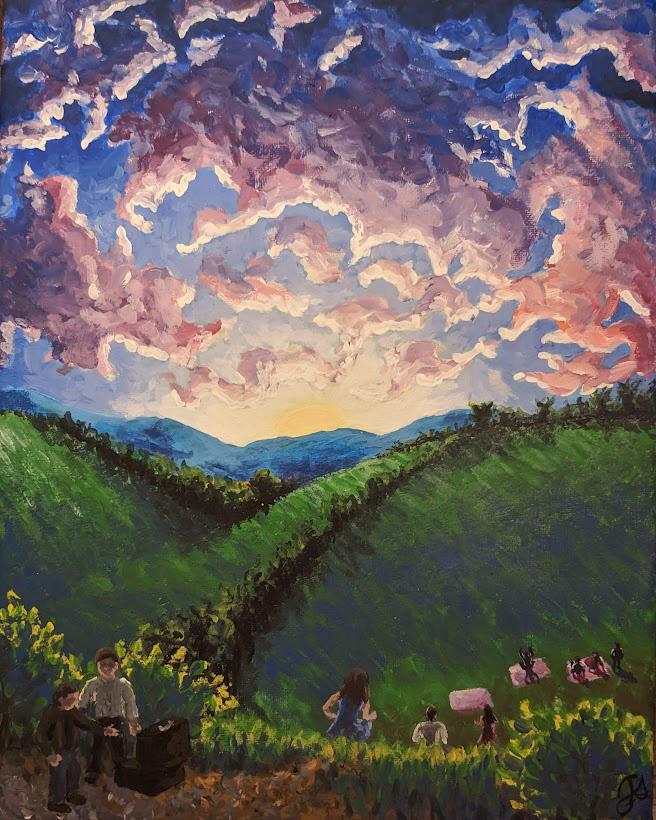 After asking what her favorite memory from her youth was, She told me that it was the night of her graduation. After a night of celebrating, her class decided to end their festivities by packing a trunk full of sweets, and heading out of their village. They handed out their treats to any passerby heading to work, stopping 3 km outside of their hometown to watch the sunrise over a field. I was inspired by her lovely story to make something for her that would remind her of that memory for years to come.