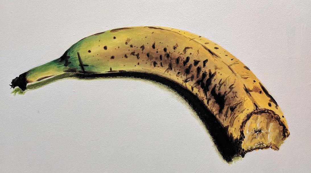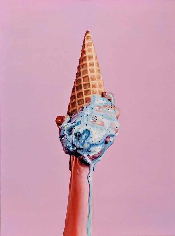 For this painting, I was inspired to make something that would catch people off guard in a humorous way, with a similar theme to the previous work.