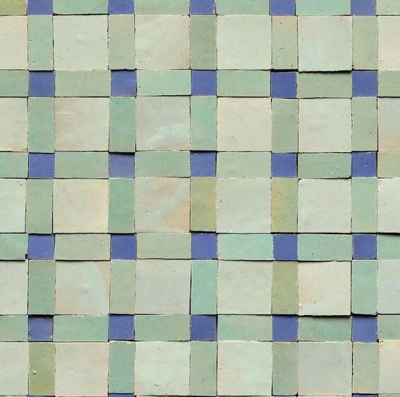 Way finding color tile outlines the space of the first floor by weaving and overlapping colors with tiles from Heath Ceramics.