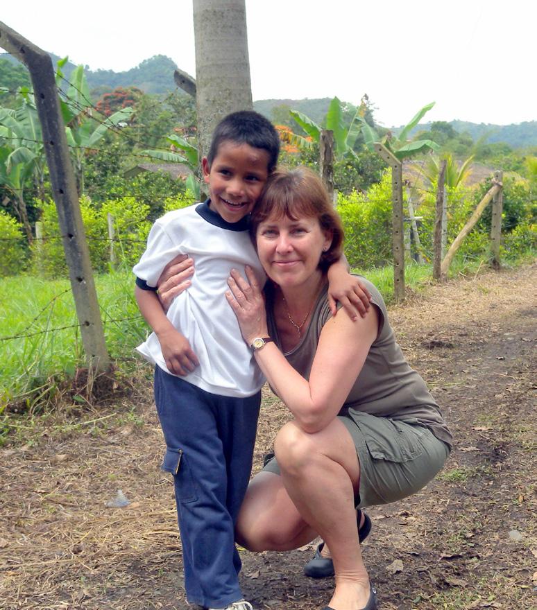 Anja työmatkalla Kolumbiassa 2008. Kuvassa Dilan-pojan kanssa.