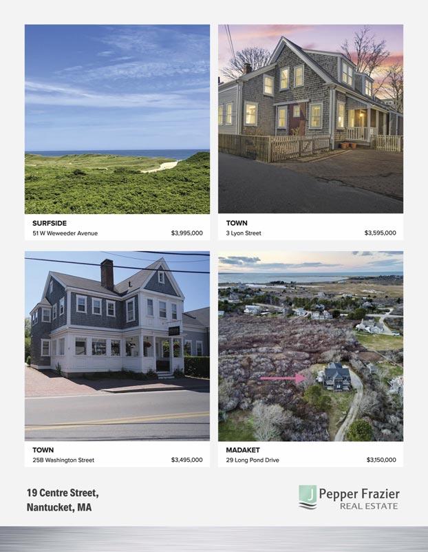The pandemic greatly altered the market:Nantucketbecame a “safe haven.” Second home ownerssoughtsolace here with theirfamilies,and those contempla ng a purchase dove rightin. These factorsallplayed into the escala on ofrealestate prices. Nantuckethaslong been home to the wealthy,but the pastfew yearshaswitnessed the “uberwealthy”inves ng in the island. The valid apprecia on Ihave witnessed overthe yearsdemonstrateswhata secure and substan alinvestment Nantucketrealestate is.