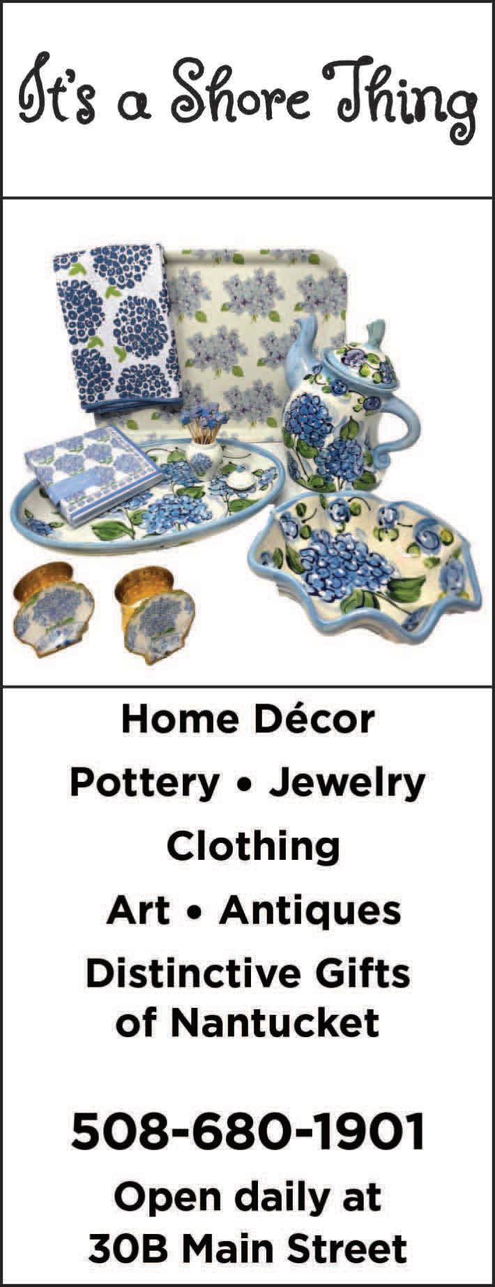 “Our commitment to Nantucket’s community, and the community’s commitment to the shop, is evidenced by the generosity of our donors, by the diligence and dedication of our volunteers and staff, and by the enthusiasm of our shoppers,” said Pam Leinbach, president of the Thrift Shop Board of Directors. “As we approach our centennial, the Thrift Shop will continue its proud devotion to Nantucket’s residents and visitors by providing affordable goods and by donating the proceeds earned to NCH, to help care for both.”