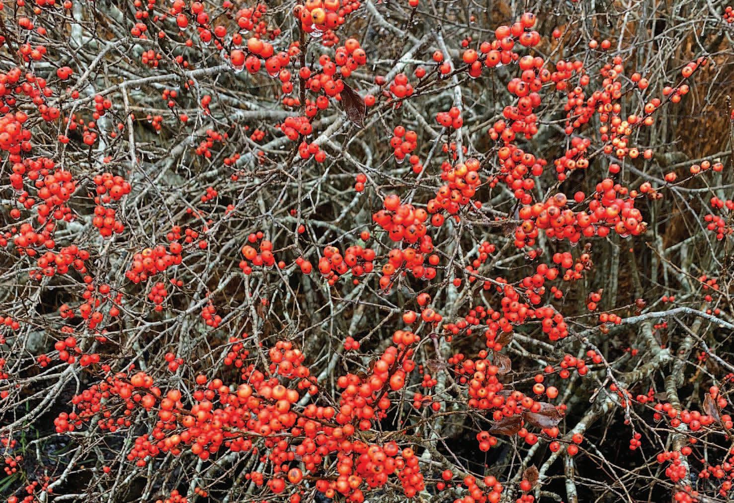 Winterberry, Ilex verticilata, is a deciduous, native shrub of the edges of bogs and wet places. On Nantucket, it can go underappreciated or undetected throughout most of the year. From Thanksgiving through New Years, however, it is the star of the shrubbery show.