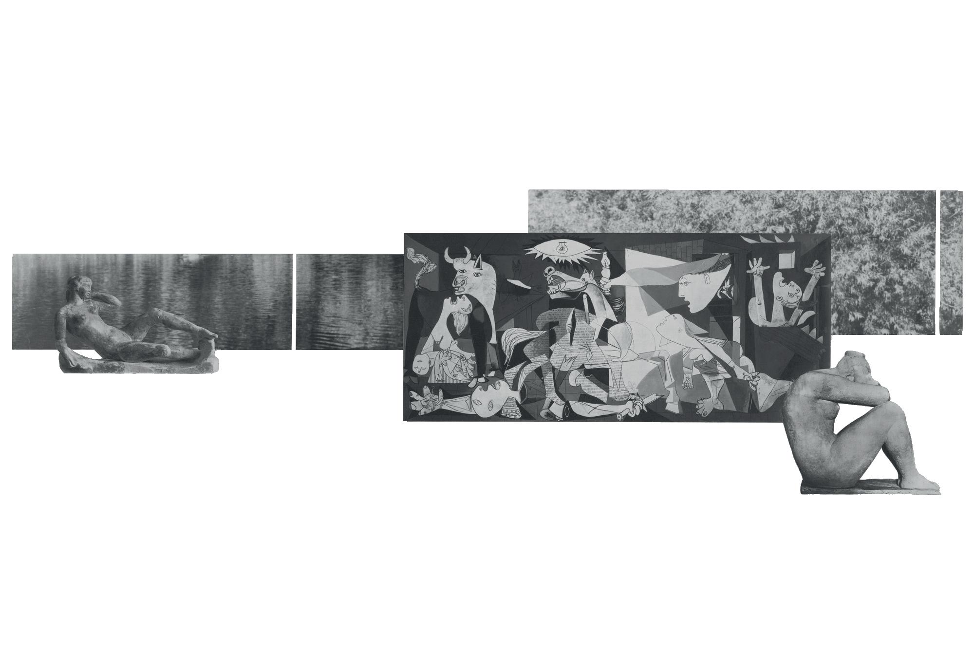 Stan Allen, in his essay ‘Mies’ theater of effects’ observes the Neue Nationalgalerie’s underlying application of ‘the virtual’ as being deeply predicated on Mies’ process of representation.47 When speaking of ‘the virtual’, Allen is referring to the optical, ephemeral effects that architecture produces such as light, shadow, and transparency, which he believes are profoundly constitutive of the experience at the Nationalgalerie. In contrast to the precise tectonic craftsmanship for which his work is largely synonymous with, Mies’ graphic representations would often obscure or completely dematerialise any architectural legibility, suggesting that Mies - as a master builder at heart – was fully conscious that the perceptual dimension of a building cannot be captured in a drawing, and thus strictly belonged in the realm of physical presence. Mies’ Collage of a ‘Museum for a Small City’ (1942) is a prime example of how he reduces the architecture to a “barely legible trace”48 instead depicting components of a landscape beyond the building thereby giving perceptual power to absence itself.