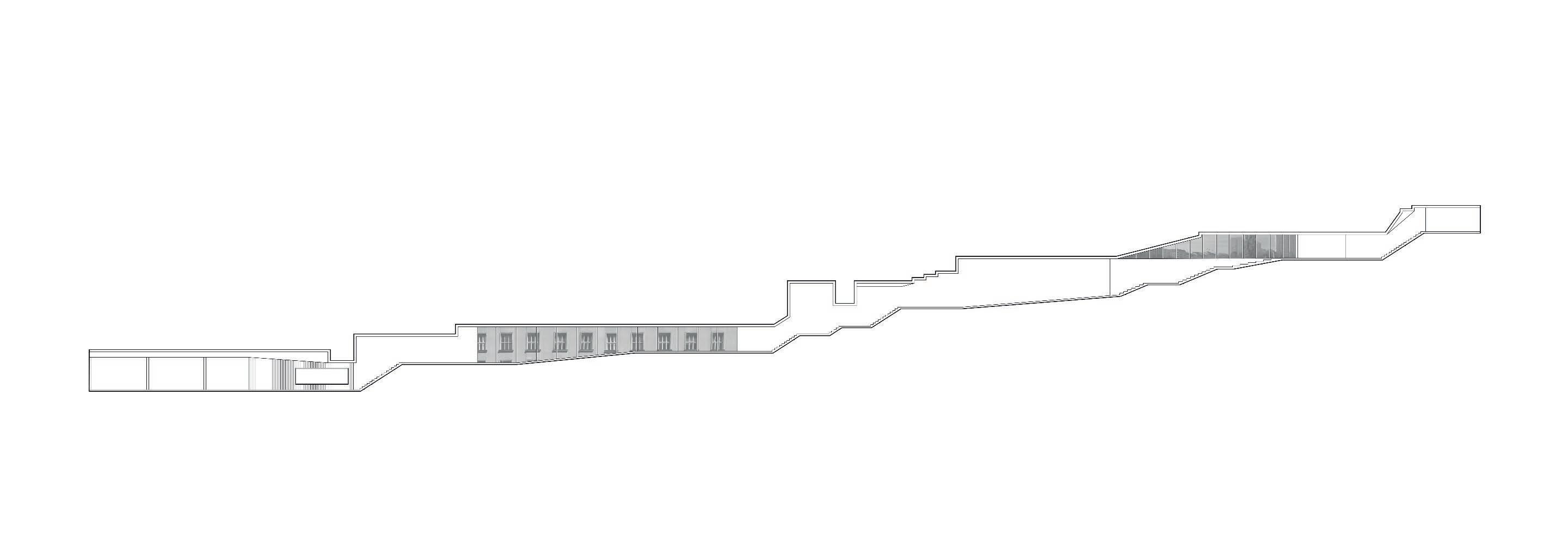 the building does bear significant impact on the void’s capability, with issues of territory and public-private divide being crucial in the security of the Embassy; a somewhat cursory observation to make, but undoubtedly important in acknowledging its potential limitation in offering a performative function akin to that of Jussieu, as the introduction of any sort of ‘social magic carpet’ in such a setting would be impossible. Indeed, one could even argue that, by structuring the trajectory only around visual links to the city’s key historical moments, the building loses its autonomy. In this reading, the void holds limited agency, as its value is tied solely to its surrounding figure (i.e. the envelope of the building itself as well as the wider urban context which organises and gives performative value to the void). Clearly, both the ‘L’ shaped courtyard and the internal trajectory emerge as the dominant spaces of the scheme, with the implication that – not unlike Casa da Música - the ‘negative’ or ‘absent’ elements can become significant representative or even iconographic features of a building. Nonetheless, the potency of the void strategy lies beyond its symbolic nature (which in the rhetoric of Koolhaas, would not but evoke the devastating