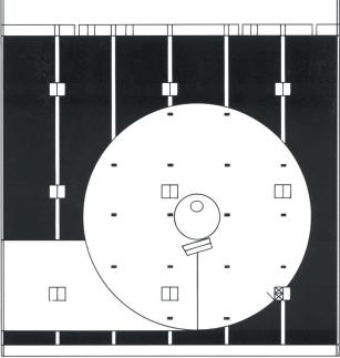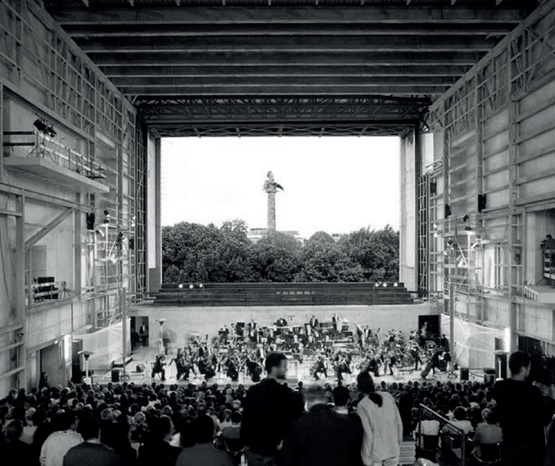 Urbanistically, one would again naturally recall Rowe and Koetter’s assessment of the free-standing Modernist object. Internally, the theatre’s central auditorium emerges as a celebrated self-contained void which places the form of the building in isolation, orientated as to offer a linear view of the imperial monument at the centre of the rotunda. But whilst Philippou vindicates its institutional performance by recognising the city as a scenic backdrop for internal performances,34 it can also be reasoned that such a proposition would fail to generate a reciprocal, dynamic relationship with a context. Instead, the static nature of the void establishes a purely scenographic relationship with the city in which, through its visual framing, the urban context becomes subordinate to the autonomy of the building.