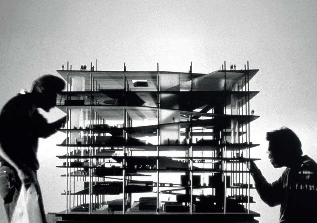 Figure 12: Architectural model for The Jussieu Libraries, showing internal trajectory and manipulation of floor plates.