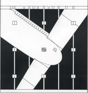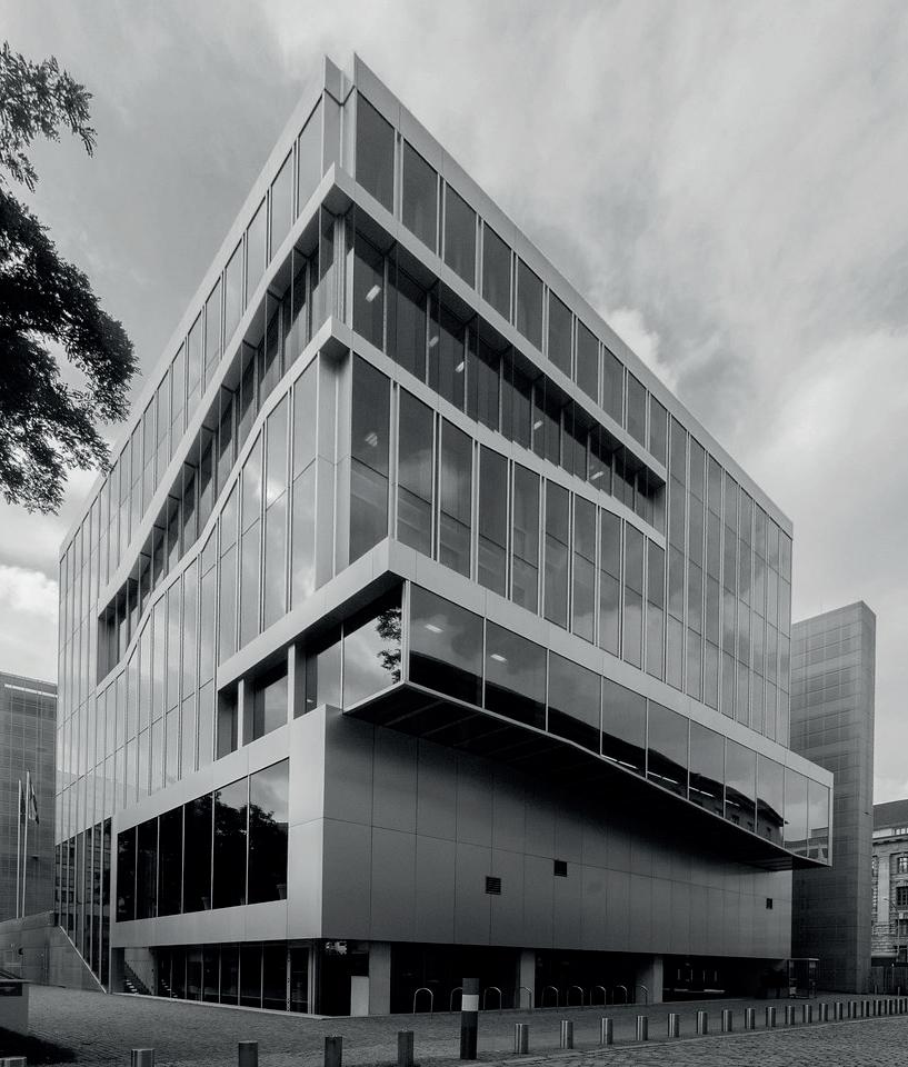 the context. What becomes apparent here is a twofold reading of the building, both as monolithic object and segment of the typical urban block. Whilst the conventional arrangement of the traditional city described by Rowe and Lucan has its voids completely enclosed by its architecture, the Dutch Embassy’s courtyard is permeable on the eastern side via its ramped connection to Klosterstraße resulting in a relationship to the context that varies from that of a typical institutional building in Berlin.38 Alluding to the idea of bricolage, the Dutch Embassy can be hence interpreted as a ‘reconciliation’39 – as Rowe and Koetter put it – of a Modernist object that emanates an autonomous identity whilst remaining tethered to the traditional typology of the city.