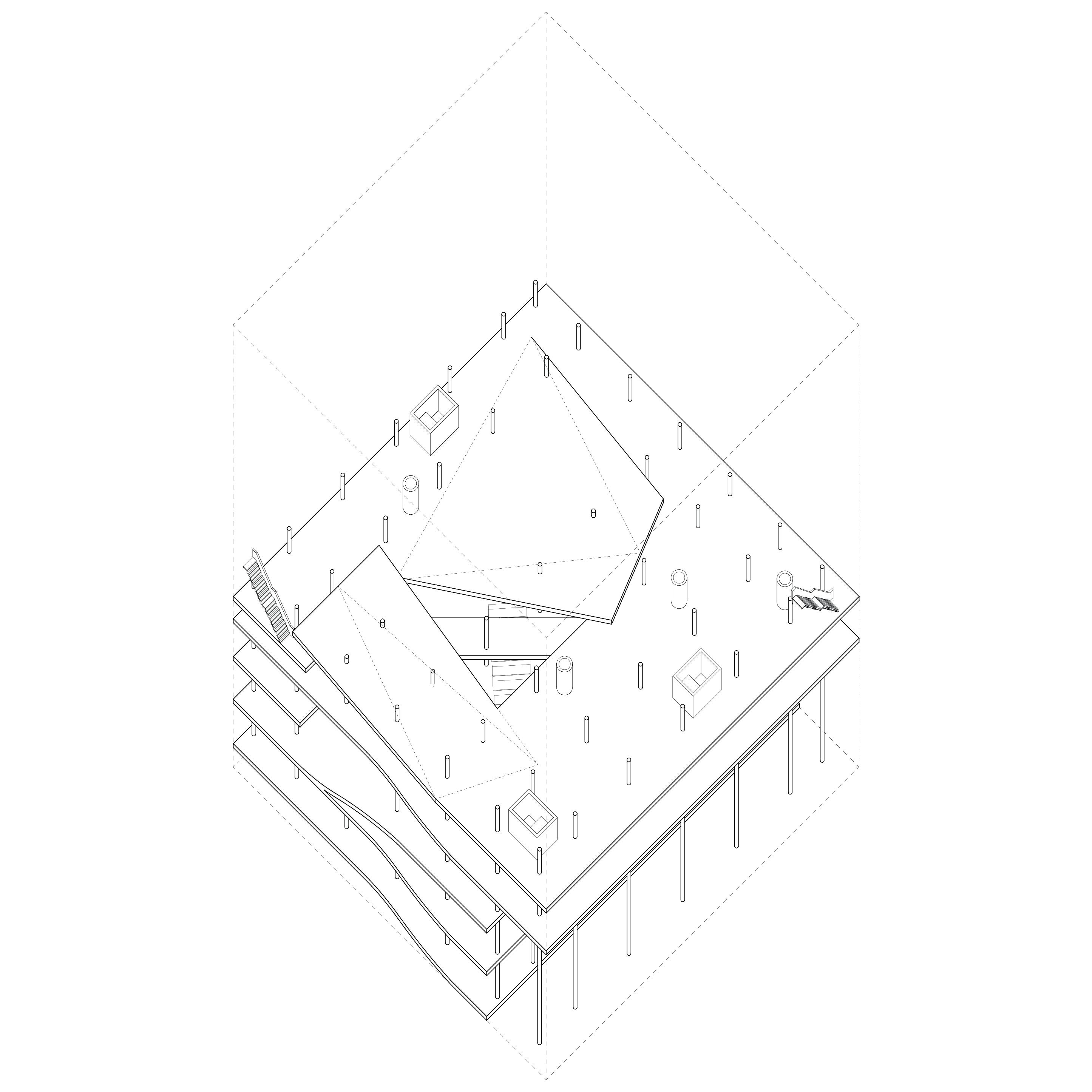 Figure 13: Axonometric drawing of The Jussieu Libraries (mezzanine level).