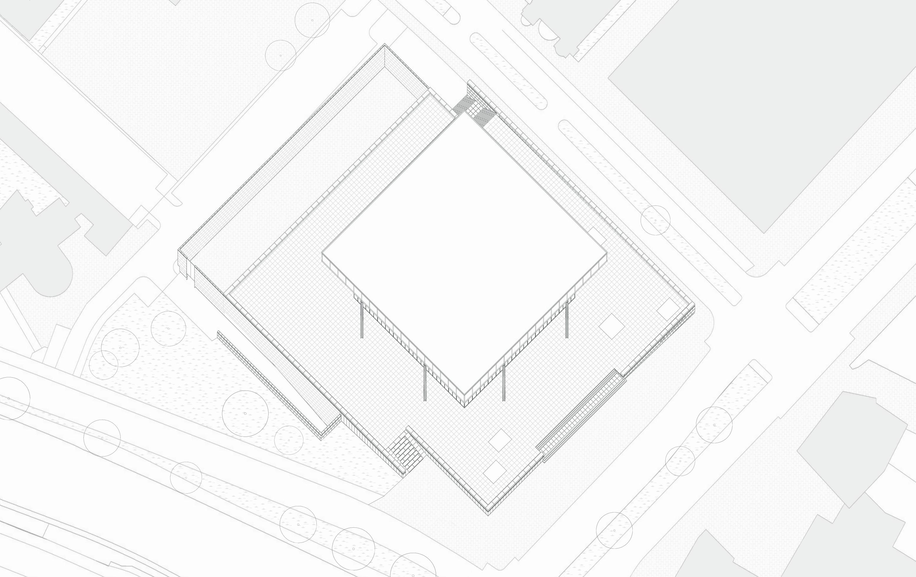 Figure 18: Axonometric drawing of Mies Van Der Rohe’s Neue Nationalgalerie, Scale 1:500.