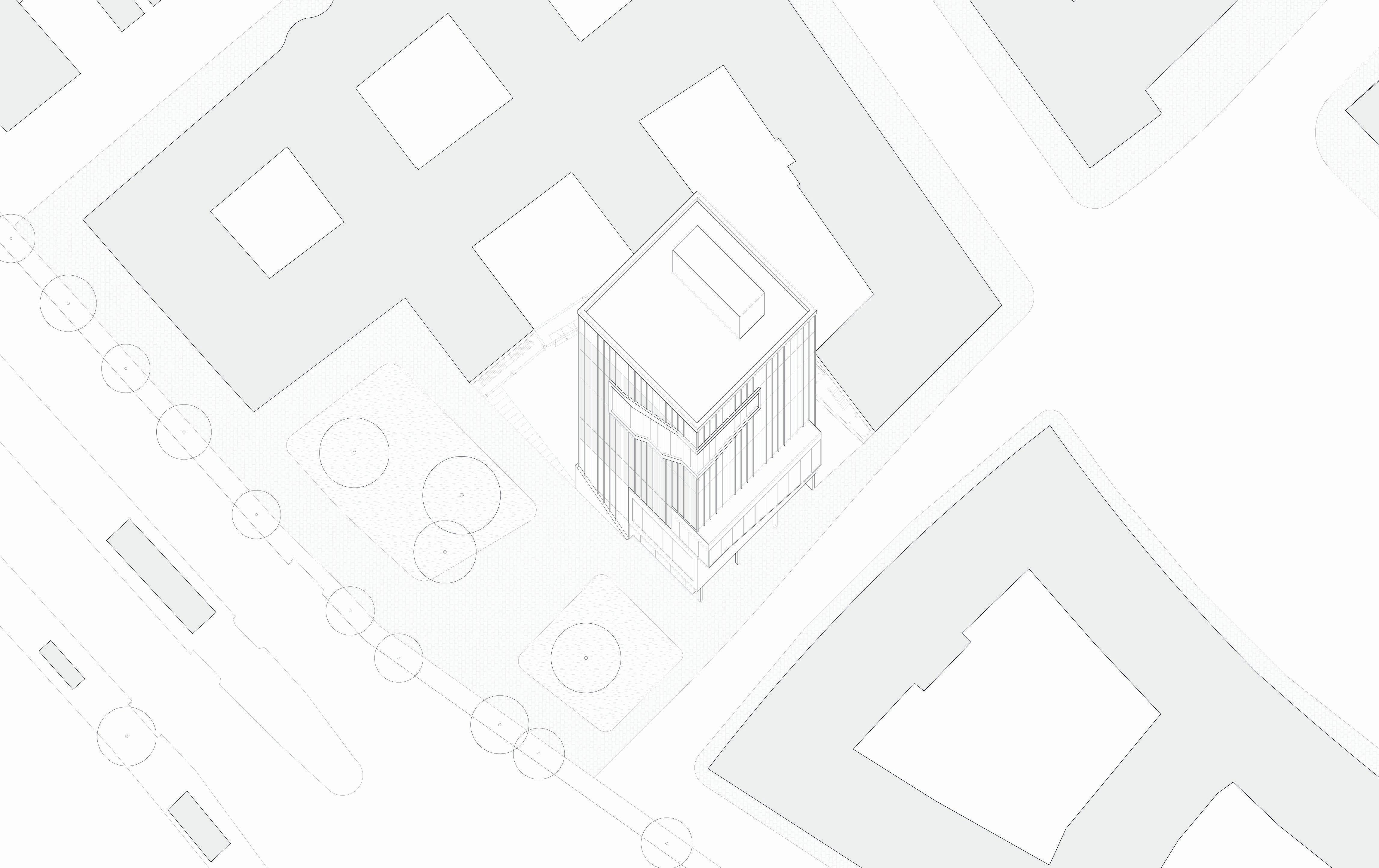 Figure 3: Axonometric drawing of OMA’s Casa da Música, Scale 1:500.