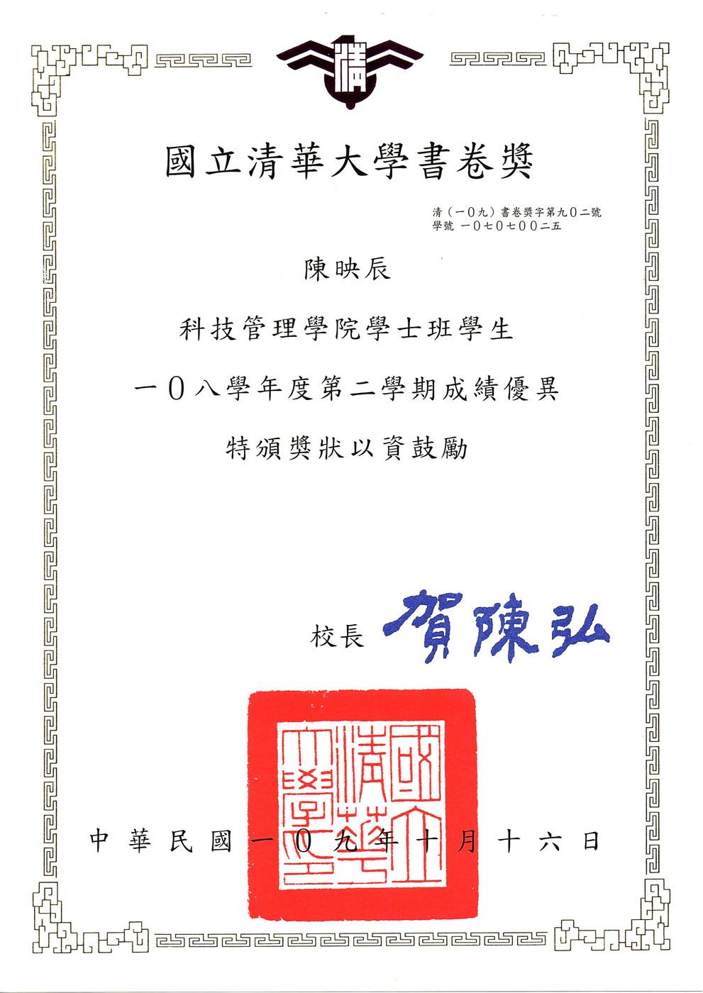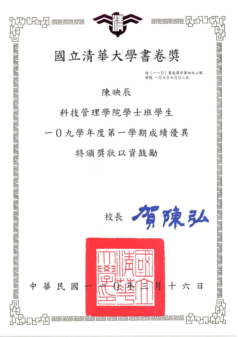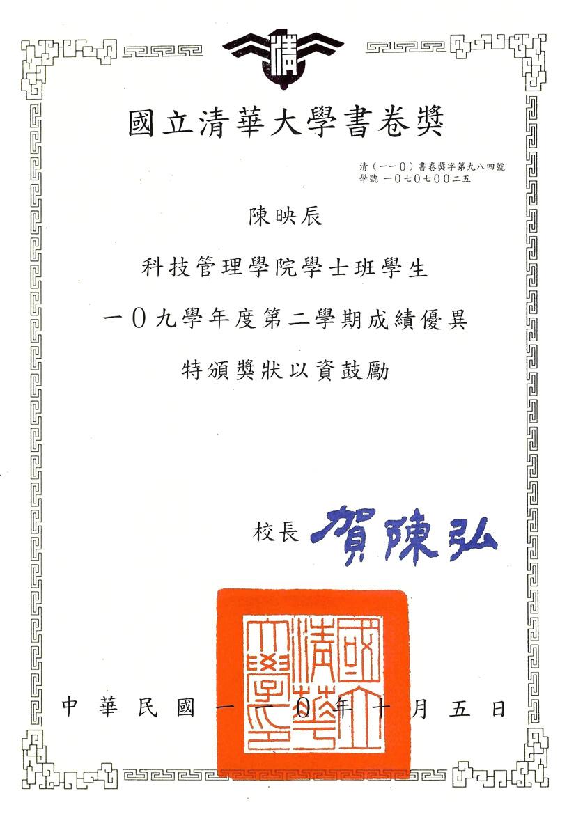 獲得 4 次書卷獎與畢業生最高榮譽-梅貽琦獎章