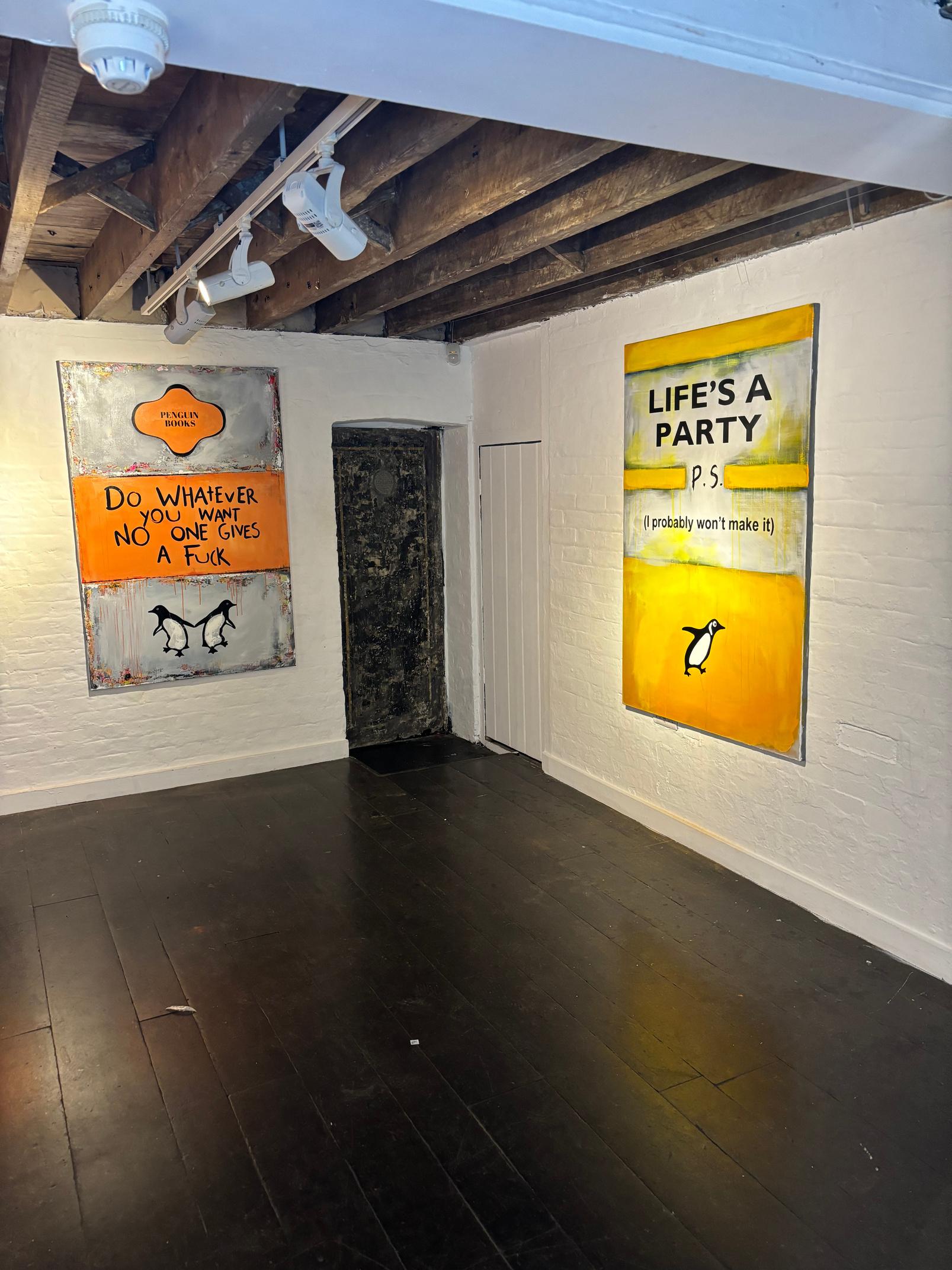 In 2001 Miller began a series of paintings based on the dust jackets of Penguin books. By appropriating the iconic Penguin logo, Miller found a way to marry painting with his writer’s love of words Influenced by Pop art and abstraction from mid-century America, his works draw attention to the inherent possibilities of language within the visual field, employing humour, irony and emotion to explore not only the formal qualities of painting but also the complexities of the spoken and written word
