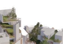 The fnal ramp connected building on diferent hierarchy, also provide space for people to walk aroud and meditation. The small blocks in-between are the vertical gardens to provide small private unit for workers.