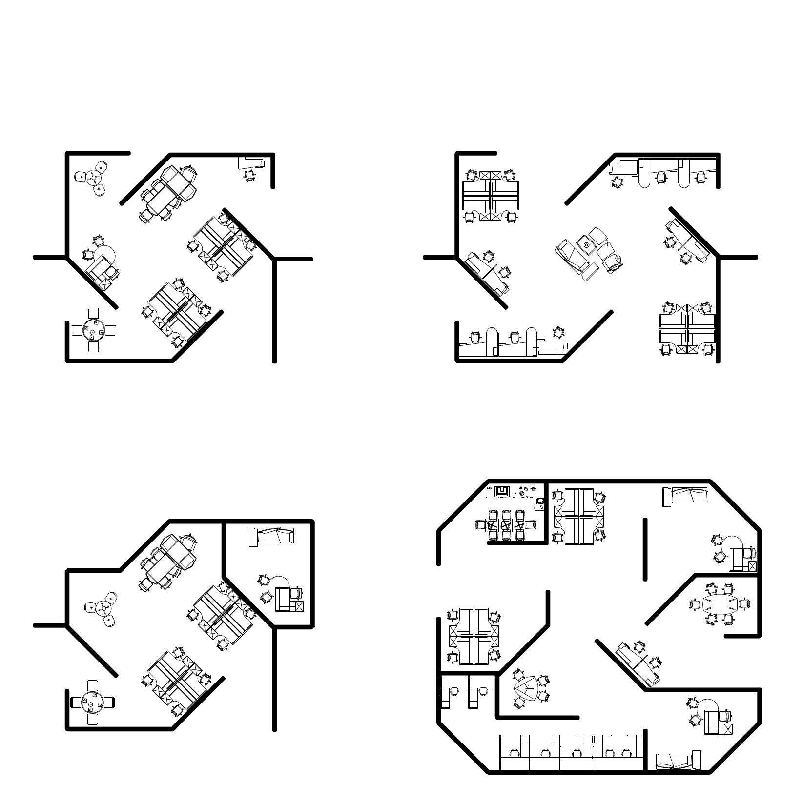 We can see the space are rotated, so it affect the layout of learning studio around the cone. The layout of difernt function room follow the requirements from spacial study.