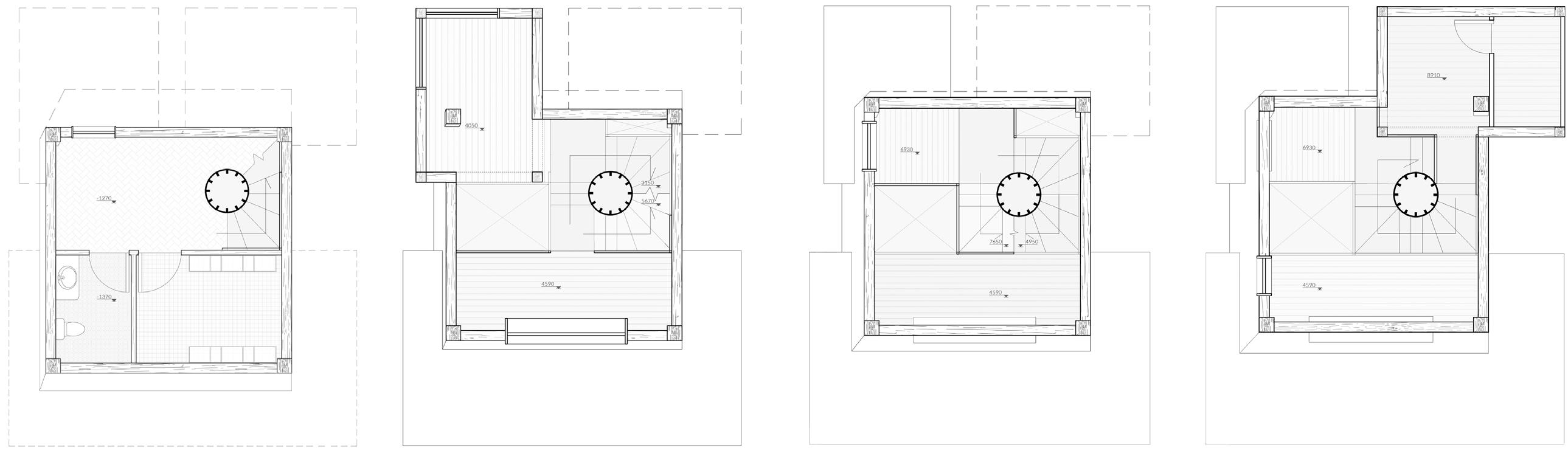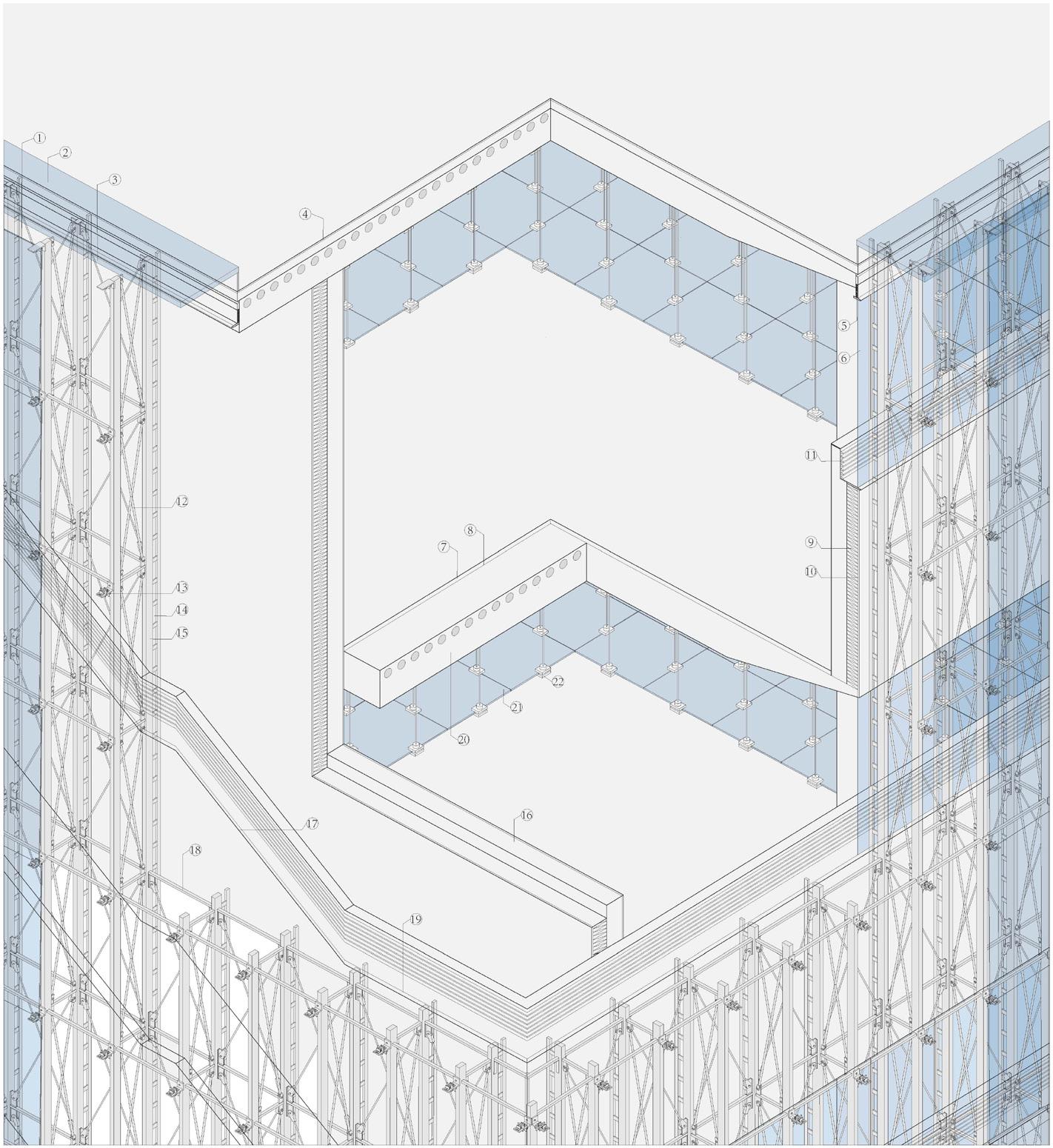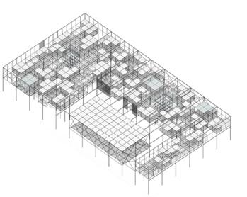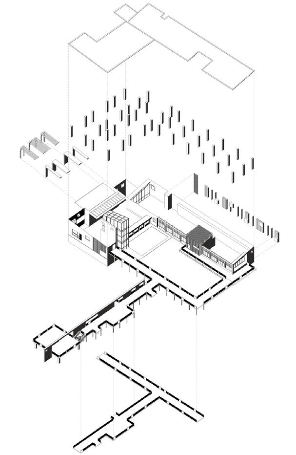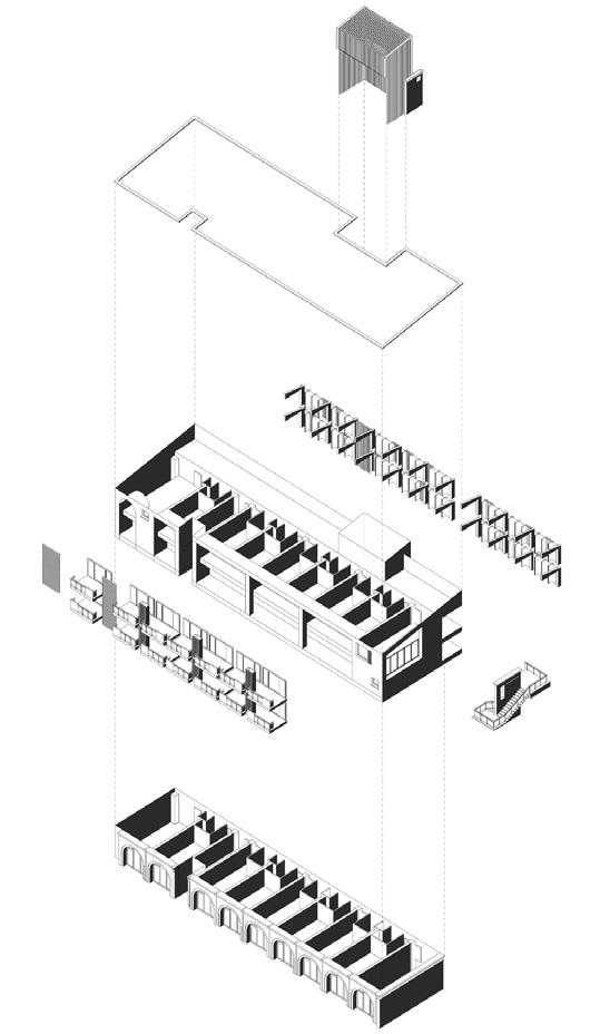 In conventional architecture, columns stand independently as load-bearing elements. In the chosen case, however, the column is seen as a hollow structure that not only contains space with an intrinsic character, but also serves as an important tool for the program to be extrapolated.