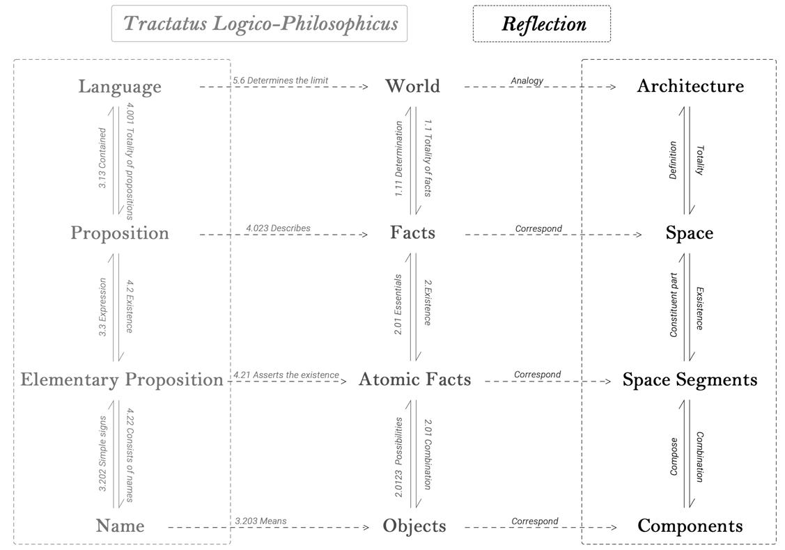 From the perspective of an architect, Wittgenstein's early philosophy exhibits remarkable isomorphism with architecture — we can view a building as a product composed of propositions woven from various architectural languages. We can attempt to use this as the sole methodology and create unexpected spaces.