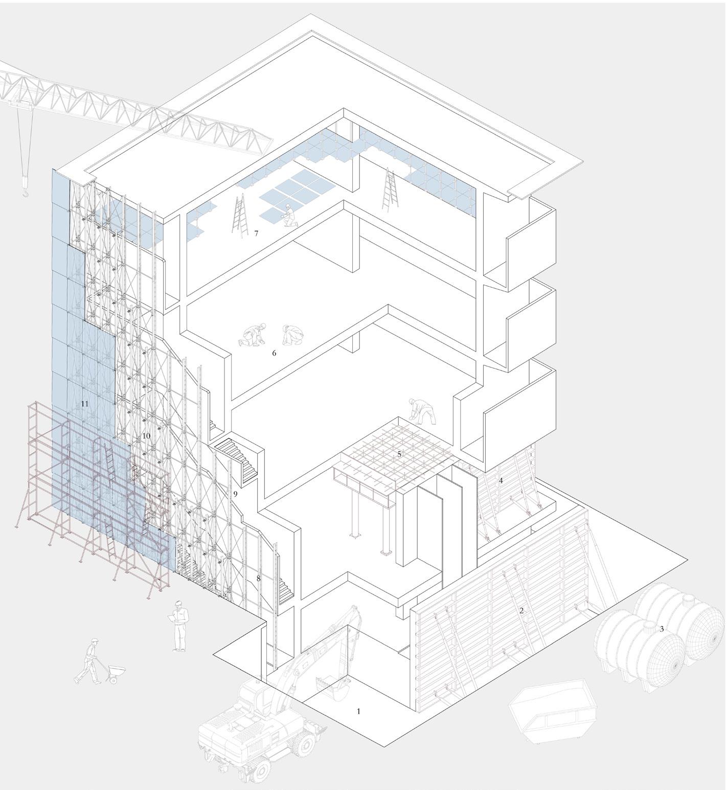 The designed "fact" is assembled according to the type of function and the accessibility of each unit is taken into account to arrive at the whole.