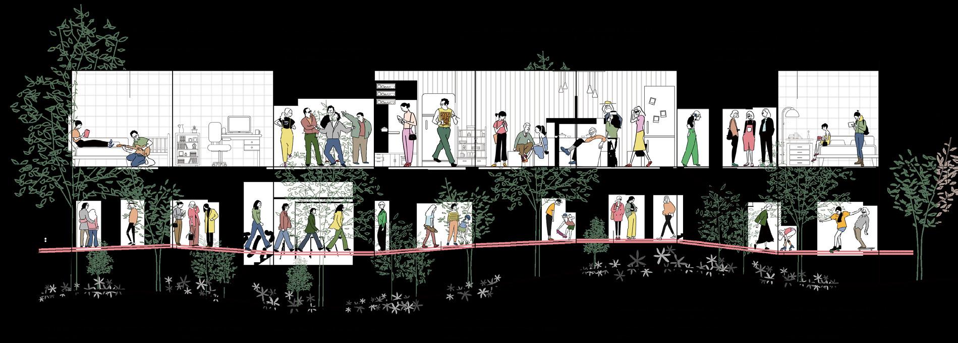 ronment. Together, these strategies reinforce a residential model that prioritizes both individual well-being and collective living.