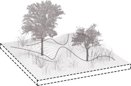 Our approach preserves the natural arrangement of trees and shrubs in urban spaces, determining the scale of large frameworks based on site analysis and tree diameters.