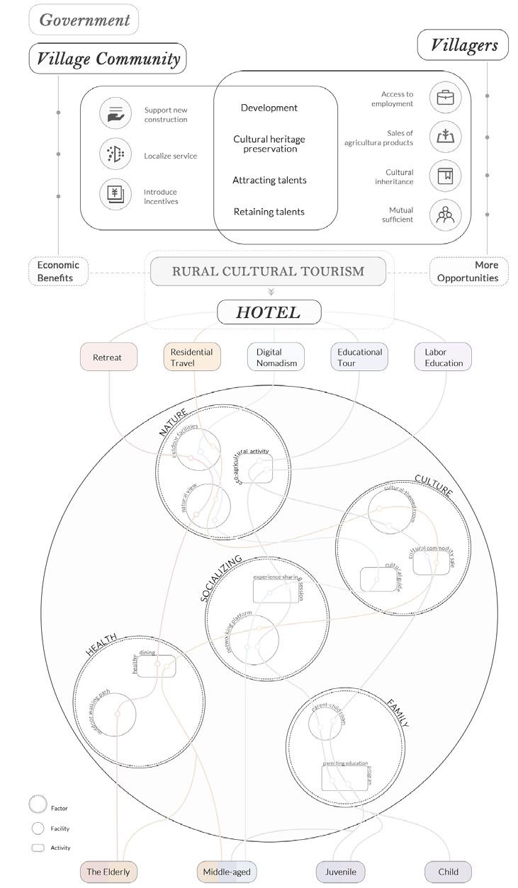 Given the ever-changing society, new rural hotels like ours in Ma Fang Village, Yan'an, need to consider diverse interests. Our strategy focuses on cultural tourism, leveraging the area's rich history and environment to offer sustainable leisure and eco-labor experiences.