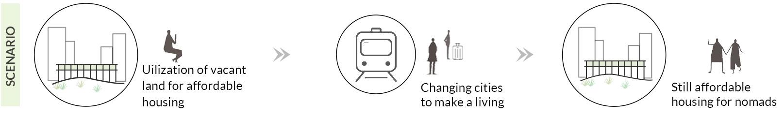 Our design transforms urban vacant land into nomadic homes for urban nomads, offering a flexible living solution that can be easily relocated.