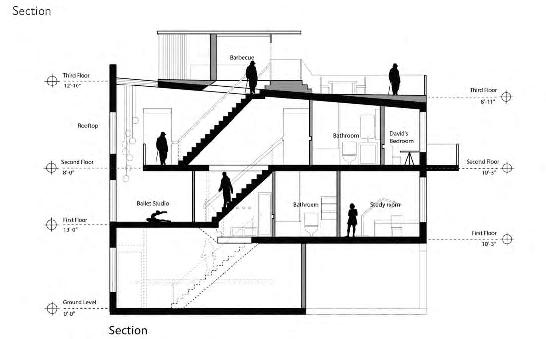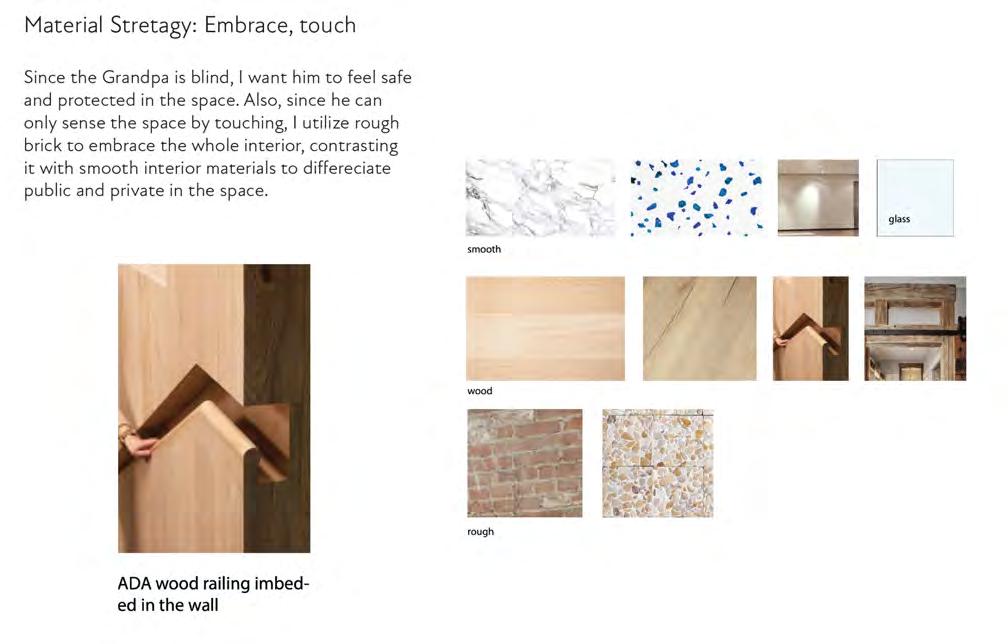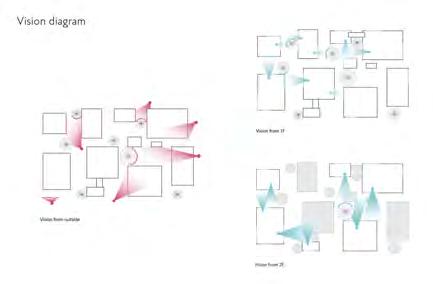 This section of high line creates interiority at the exterior space by imitating elements from interior. The deck resembles flooring, tree shade likes shelter, and the steel frame mimics a window, so that the frame crops out and presents the city view to the visitors.