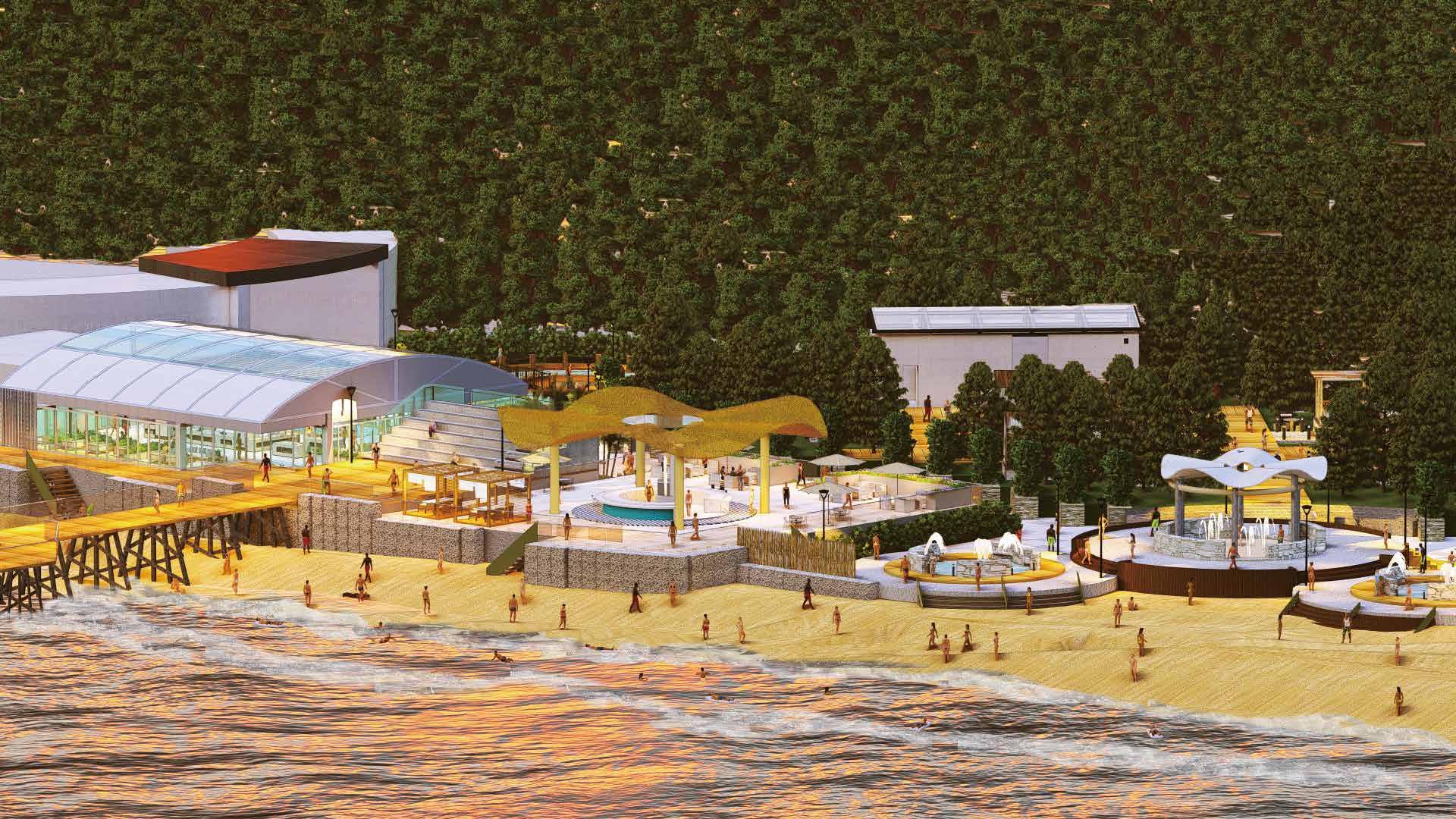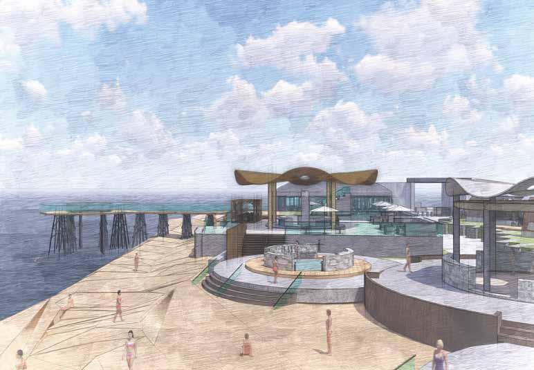 段園區,提供不同時間的空間規劃,增加遊客的停留時間,希望可 以讓更多人看見洲子灣的美,並且加入教育空間,藉由實境體驗表 達沙子的去與留,珍惜失而復得的沙灘。