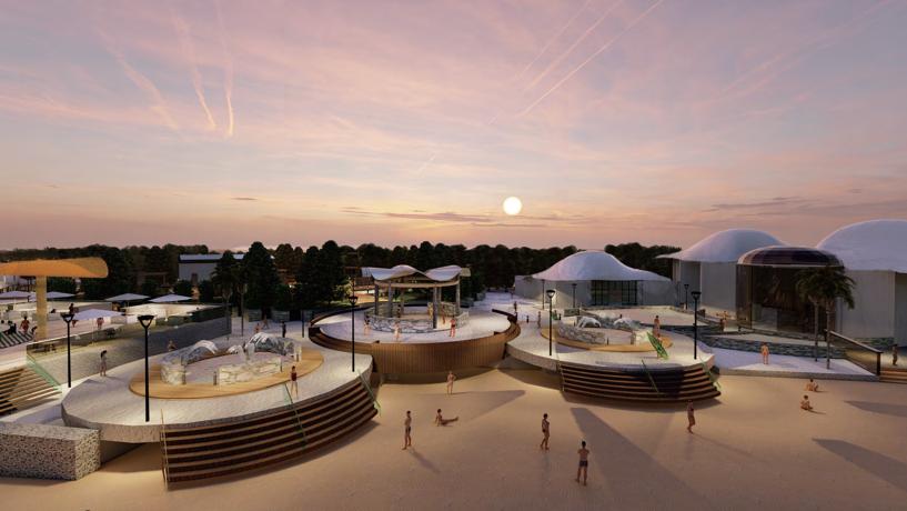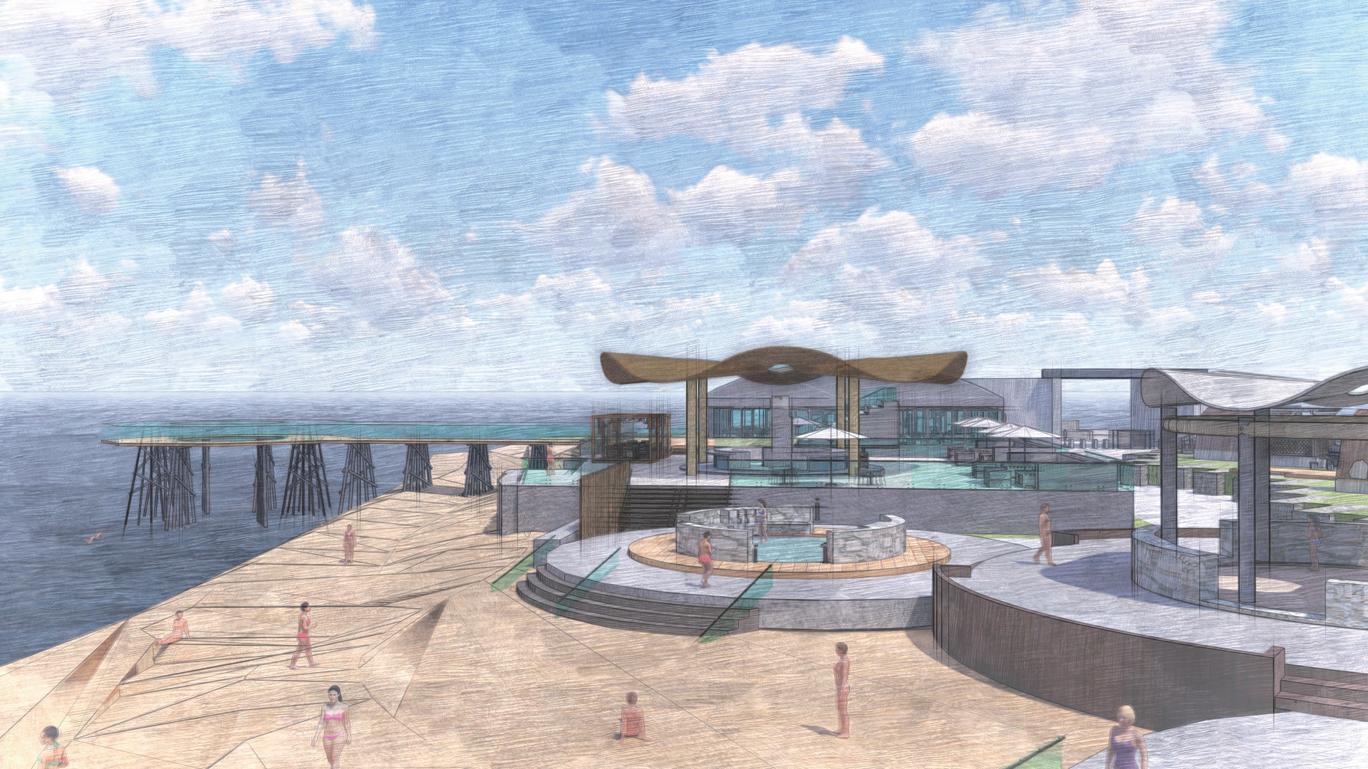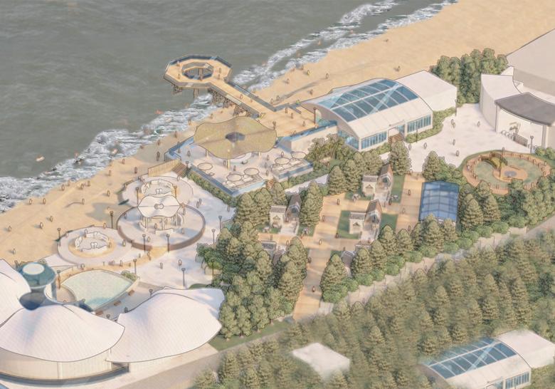 段園區,提供不同時間的空間規劃,增加遊客的停留時間,希望可 以讓更多人看見洲子灣的美,並且加入教育空間,藉由實境體驗表 達沙子的去與留,珍惜失而復得的沙灘。