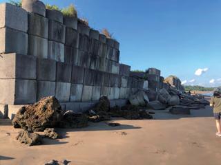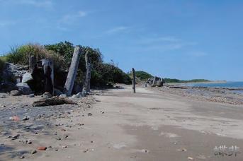 原為平坦多沙的海水浴場,因為海岸開發工程導致海岸萎縮,